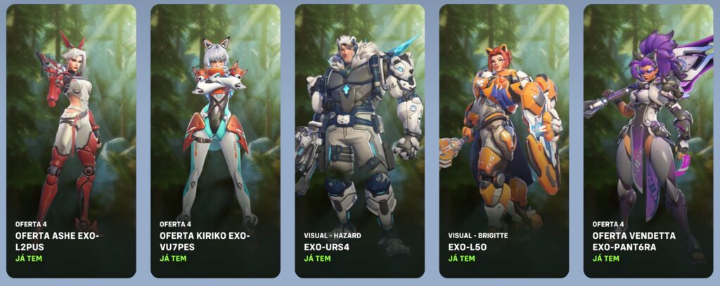 Nada disso muda a experiência de jogo, mas ajuda a completar a fantasia de cada herói dentro do tema Exo-Fauna.