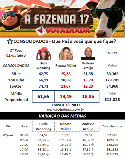 Enquete A Fazenda 17 Votalhada (Atualizado em 02/10 às 18:00)