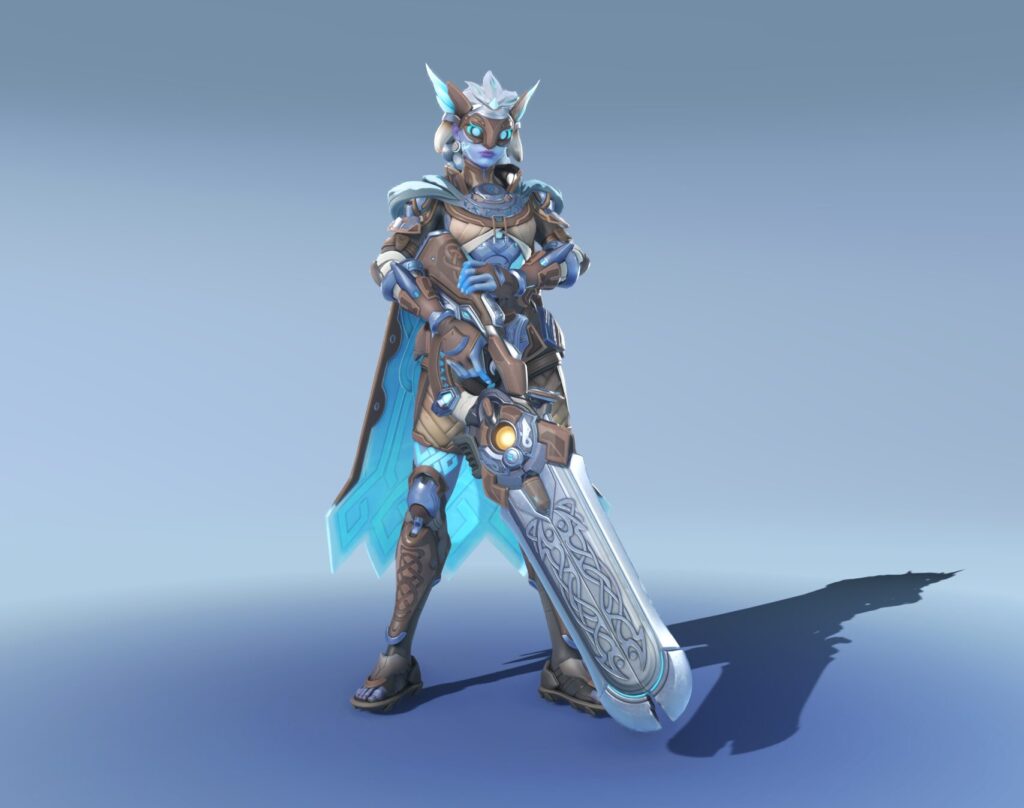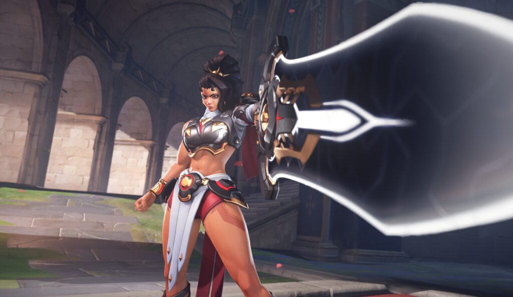 - Identidade: vilã movida por vingança contra Talon e a própria Overwatch, com visual de gladiadora moderna.
