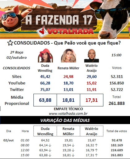 Enquete A Fazenda 17 Votalhada (Atualizado em 02/10 às 15:00)