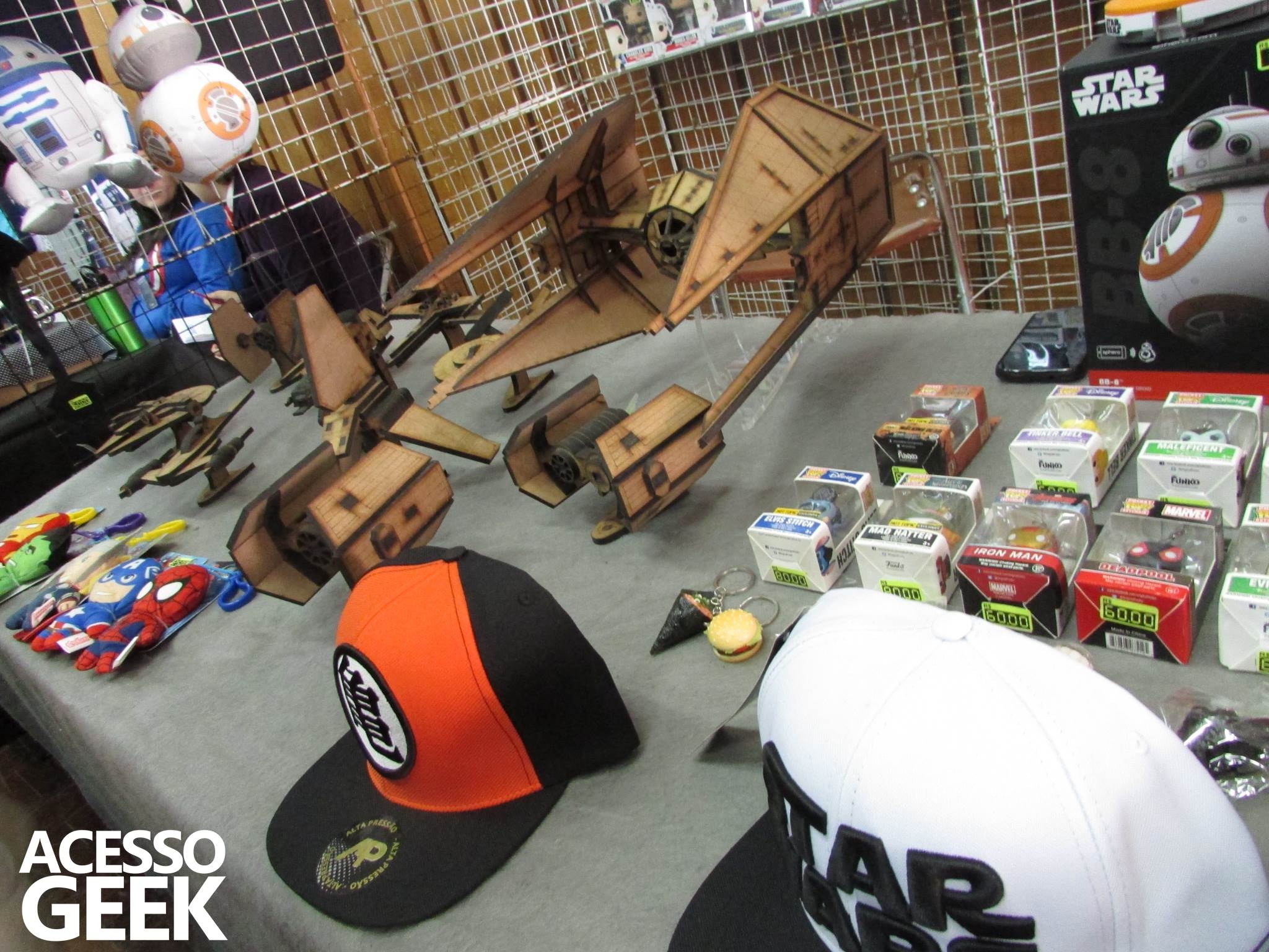 Os estandes eram muitos e se destacaram as vendas de cards, chaveiros, pelúcias, camisetas, CDs, DVDs, bolsas bandeiras, livros, Legos, Funkos, pulseiras, bonecos e miniaturas de Doctor Who, Star Trek, Star Wars, Game of Thrones, O Senhor dos Anéis, Harry Potter, entre outros.