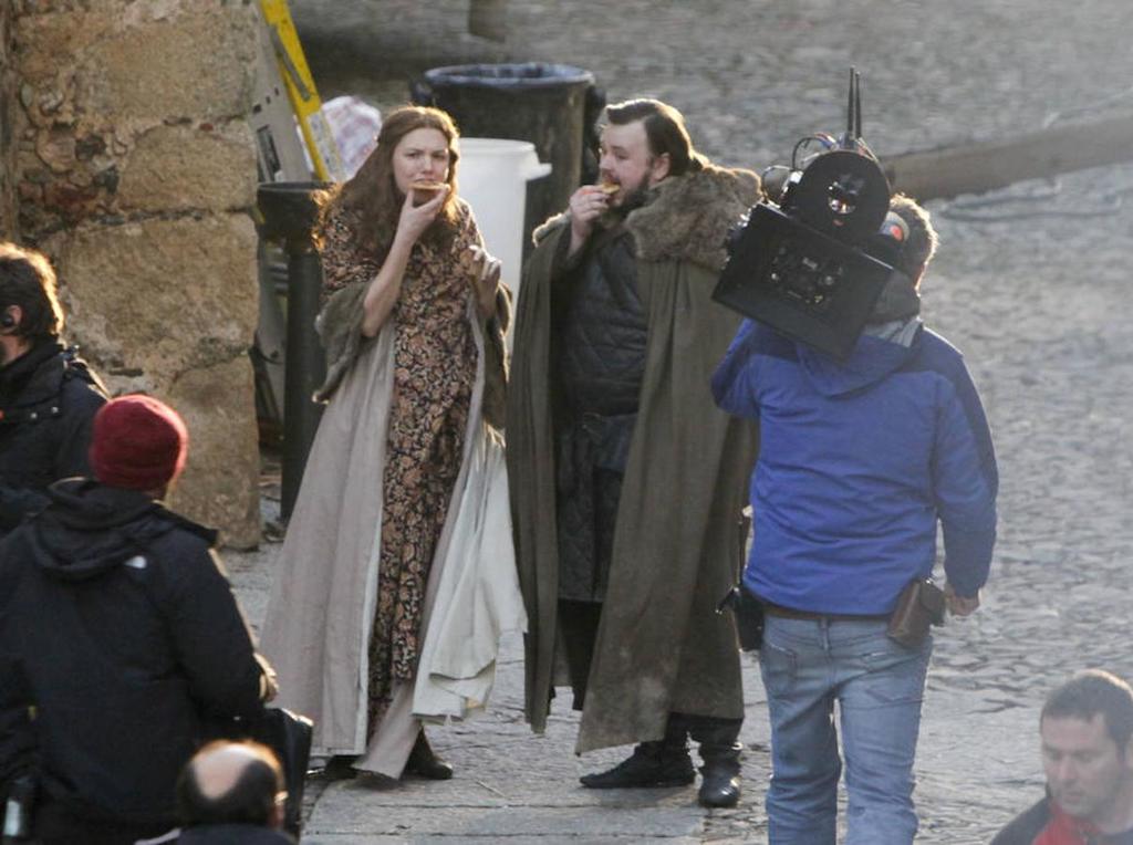 Após imagens mostrando personagens como Jon Snow, Daenerys Targaryen, Montanha e Jamie e Cersei Lannister, Samwell Tarlye e Gilly ganham destaque nas imagens do set de filmagens do último dia de gravações no município de Cáceres, na Espanha. Confira: