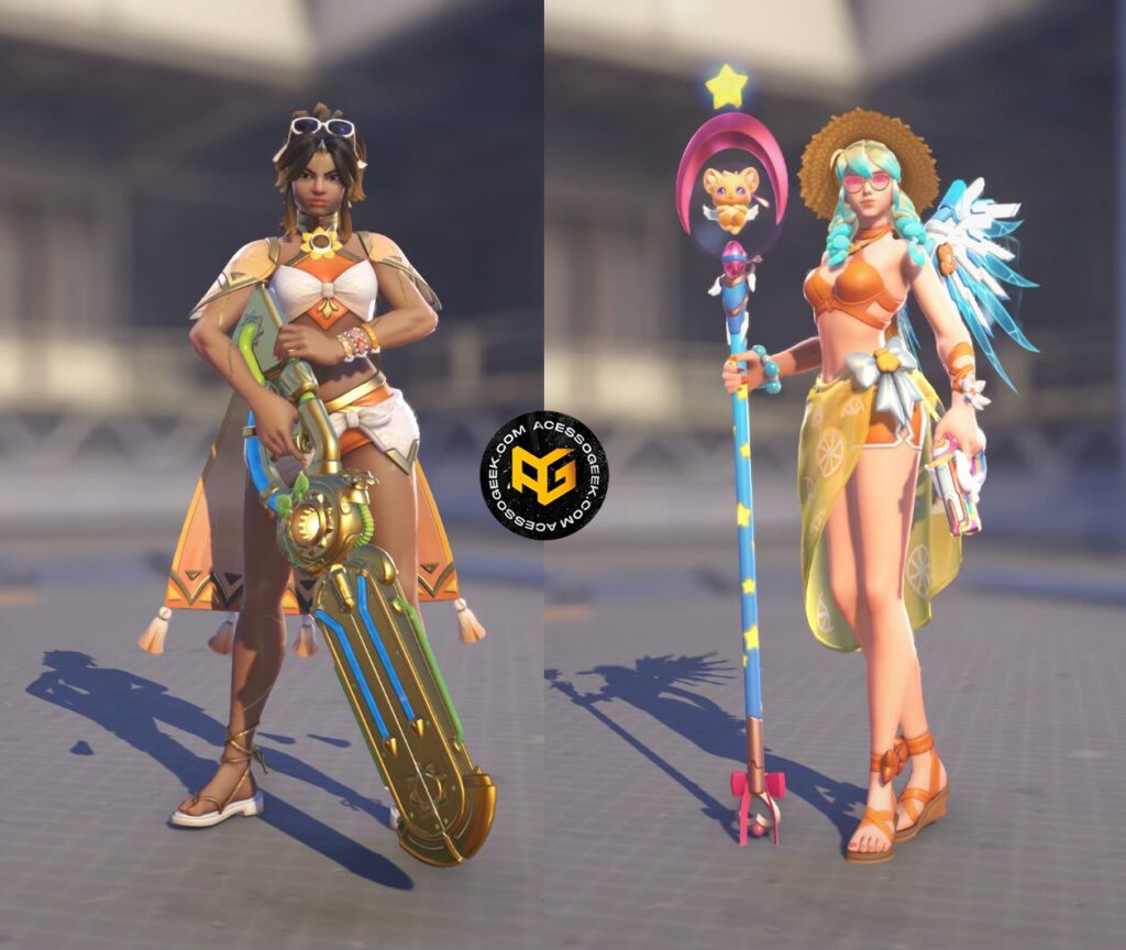 E quem disse que healers não podem curtir umas férias? Illari e Mercy também ganharam seus trajes de banho:
