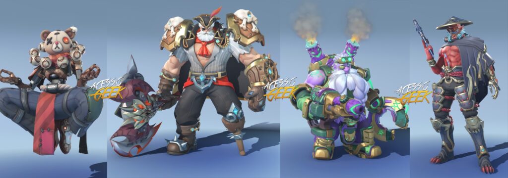 - Espíritos (de 28 de outubro a 10 de novembro): skins com pegada folclórica e mística pra Kiriko, Ashe, Reaper, etc.