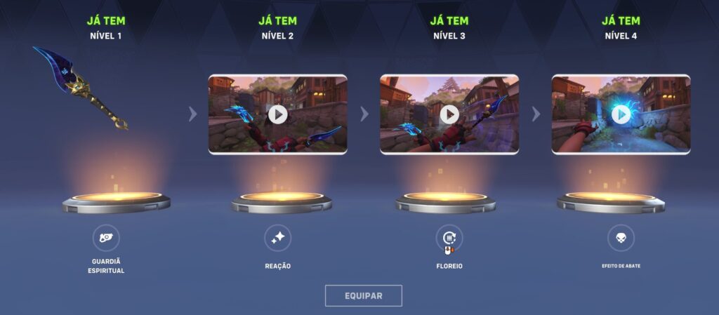 A Blizzard também mexeu na forma como os visuais míticos funcionam. Agora, quando você desbloqueia um visual mítico, já recebe ele completo logo de cara. Os escalões seguintes servem pra liberar opções de personalização, tipo cores, efeitos e acessórios. É uma mudança bem-vinda — ninguém mais queria esperar 30 níveis pra ver o visual final.
