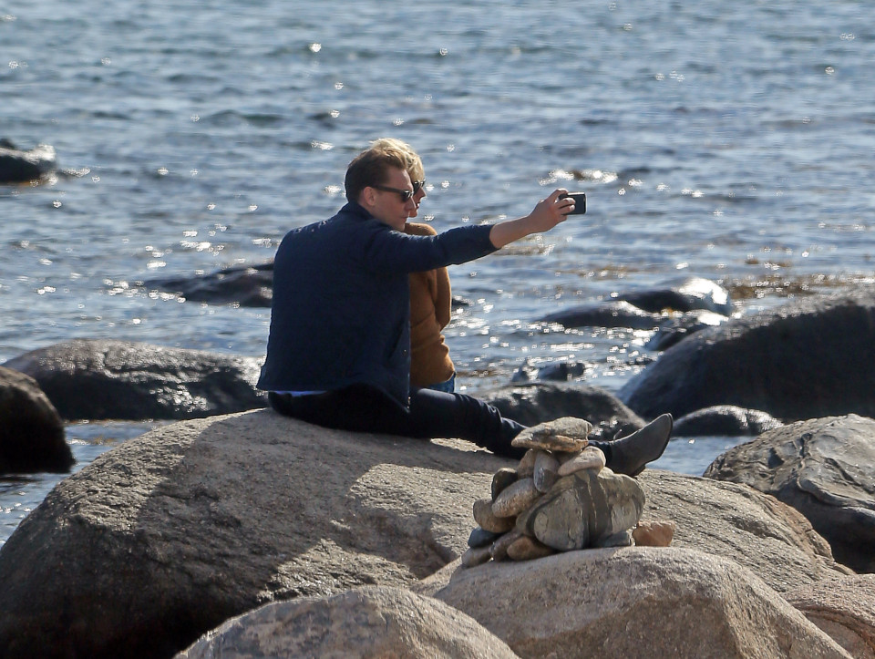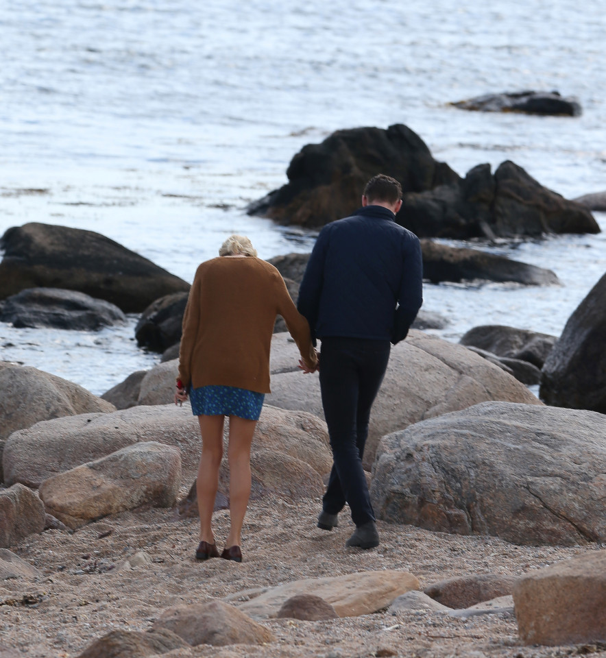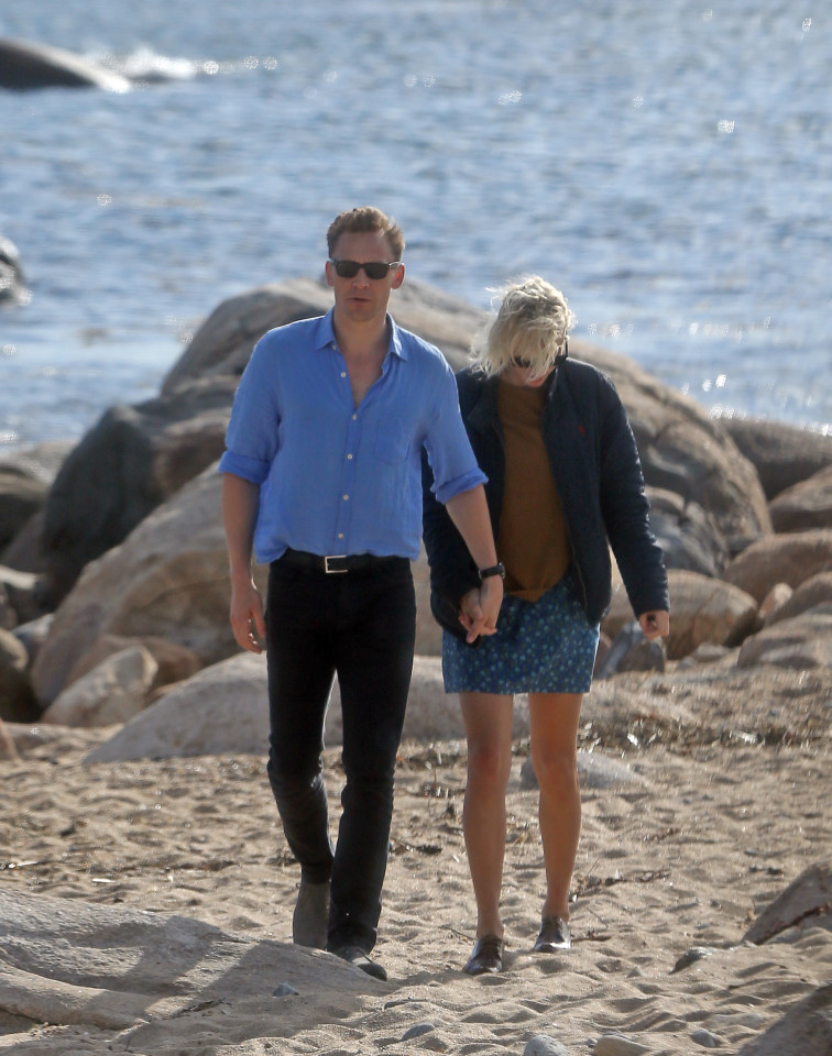 Taylor Swift was spotted with new love interest, British actor Tom Hiddleston. The two were spotted canoodling on the rocks along the beach in Westerly, RI. In between kissing the two posed for many selfies. Hiddleston, almost 10 years older than Swift, wrapped her in his jacket. The couple walked off the beach holding hands. Photo Location: Westerly RI–Public Beach Captured 9/13/16 [email protected] Please byline:TheImageDirect.com *EXCLUSIVE PLEASE EMAIL [email protected] FOR FEES BEFORE USE