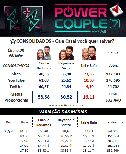 Parcial Pesquisa Votalhada Power Couple Brasil (Atualizado em 09/07/2025 às 17h30)