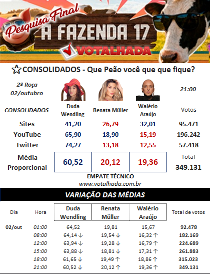 Enquete A Fazenda 17 Votalhada (Atualizado em 02/10 às 21:00)