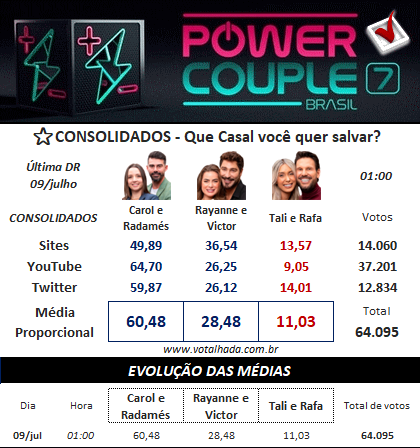 Parcial Pesquisa Votalhada Power Couple Brasil (Atualizado 09/07/2025 às 01h00)