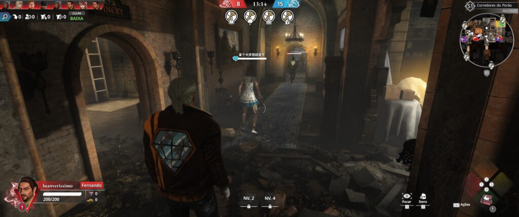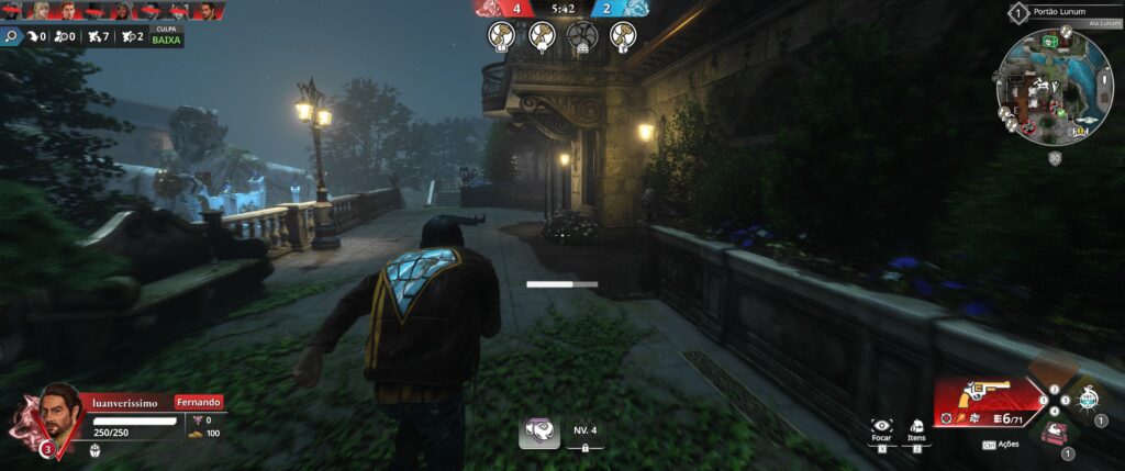 É na voz que o jogo revela seu melhor e seu pior. Em lobbies cheios de gente falante, a mansão vira um teatro: gente tentando convencer o grupo de que é inocente, ameaças veladas, acordos temporários, traições muito bem ensaiadas. Basta uma acusação mal colocada no corredor certo para começar um duelo verbal hilário ou tenso, e são esses momentos que realmente dão vida à proposta. Mas quando o grupo está silencioso, ou quando poucos se dispõem a usar microfone, o clima muda completamente. Sem discussão, o que sobra é o sistema de pistas mecânicas, o grind de quests e os tiroteios ocasionais. O jogo continua funcionando em um nível básico, mas perde justamente a camada que deveria torná‑lo único.