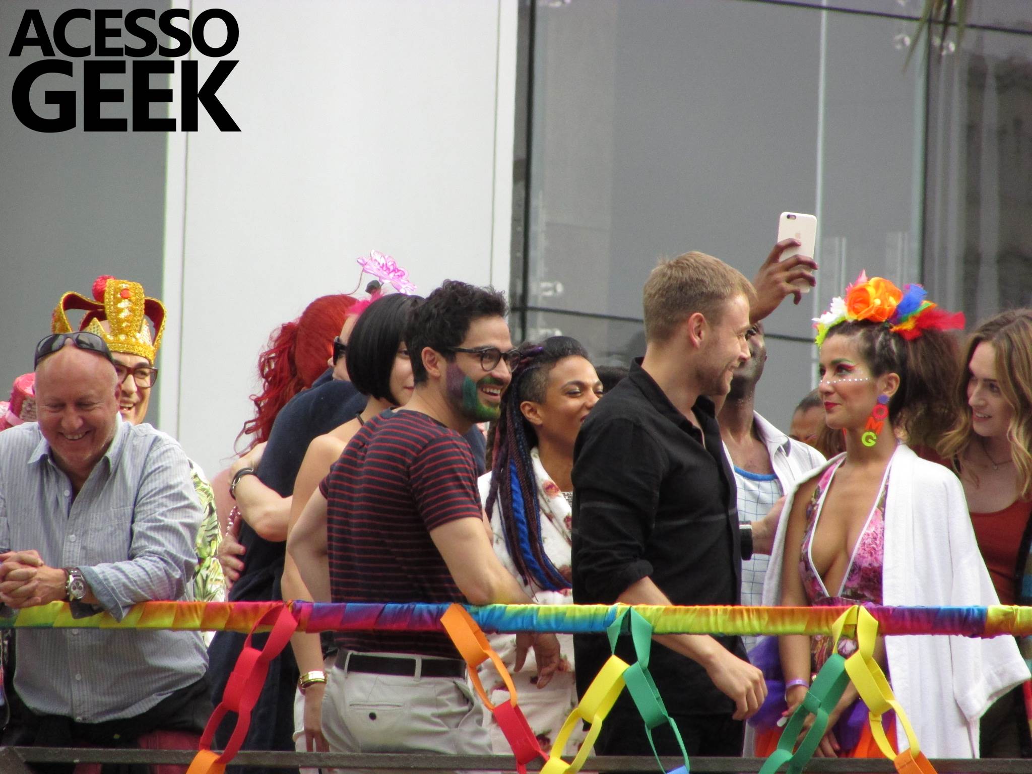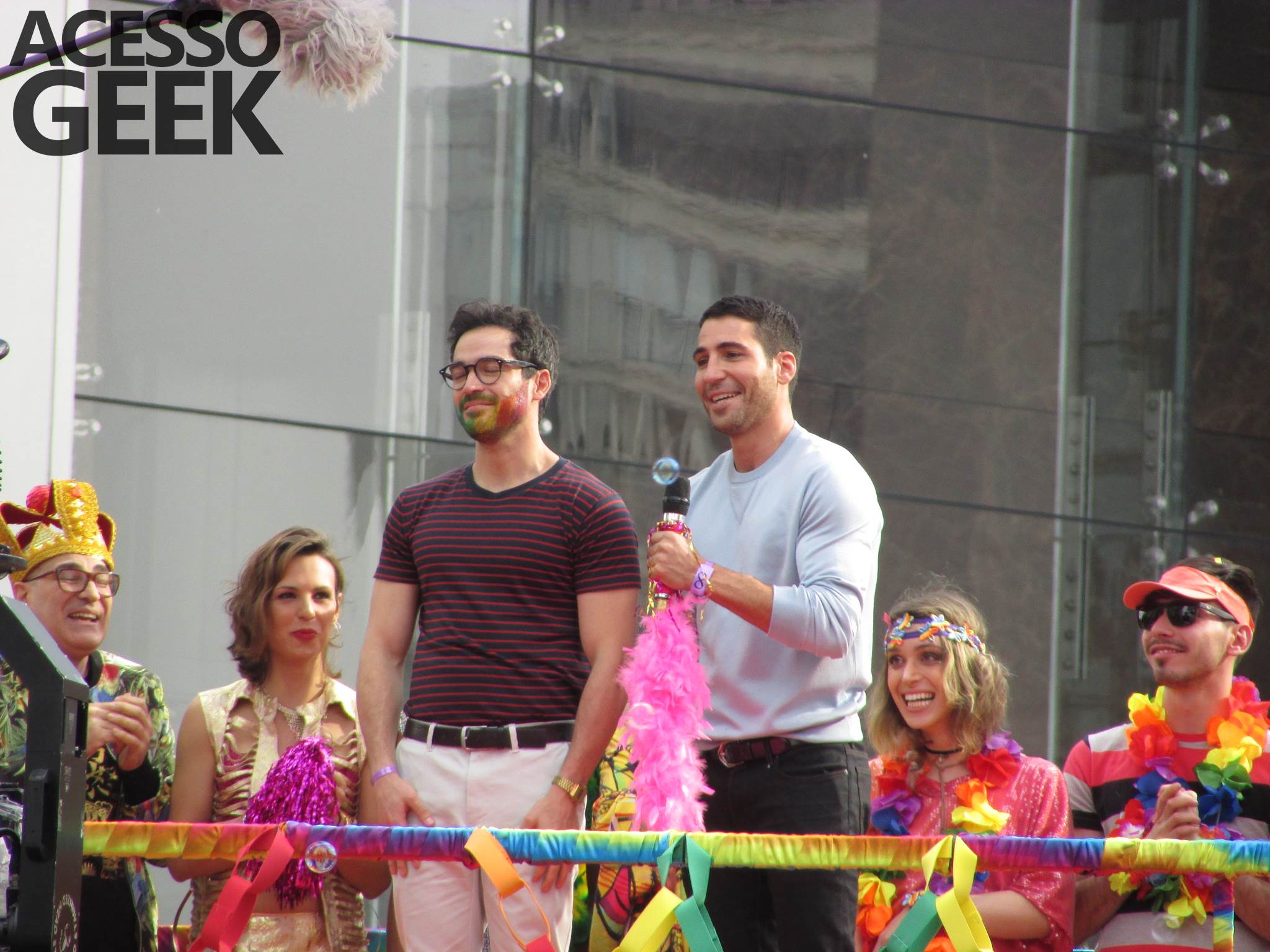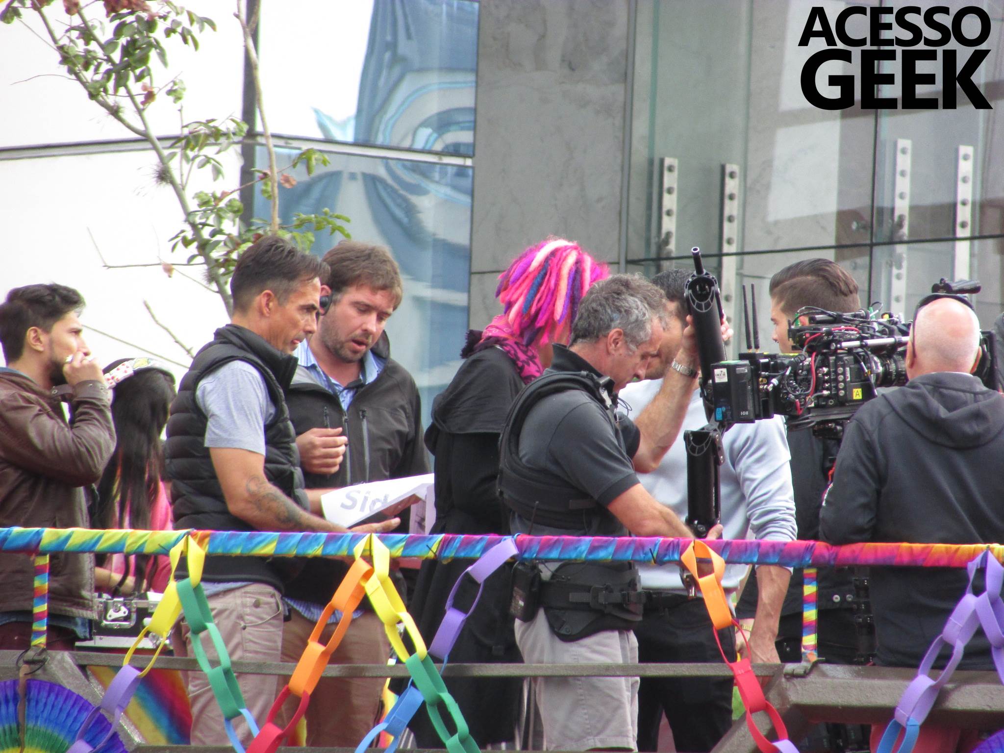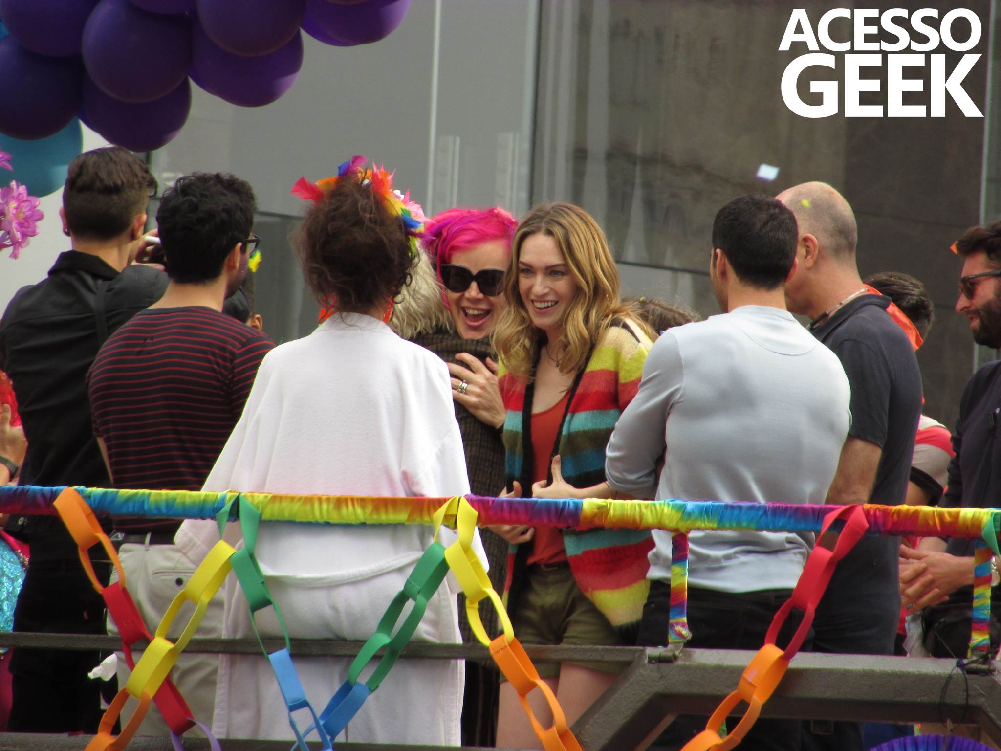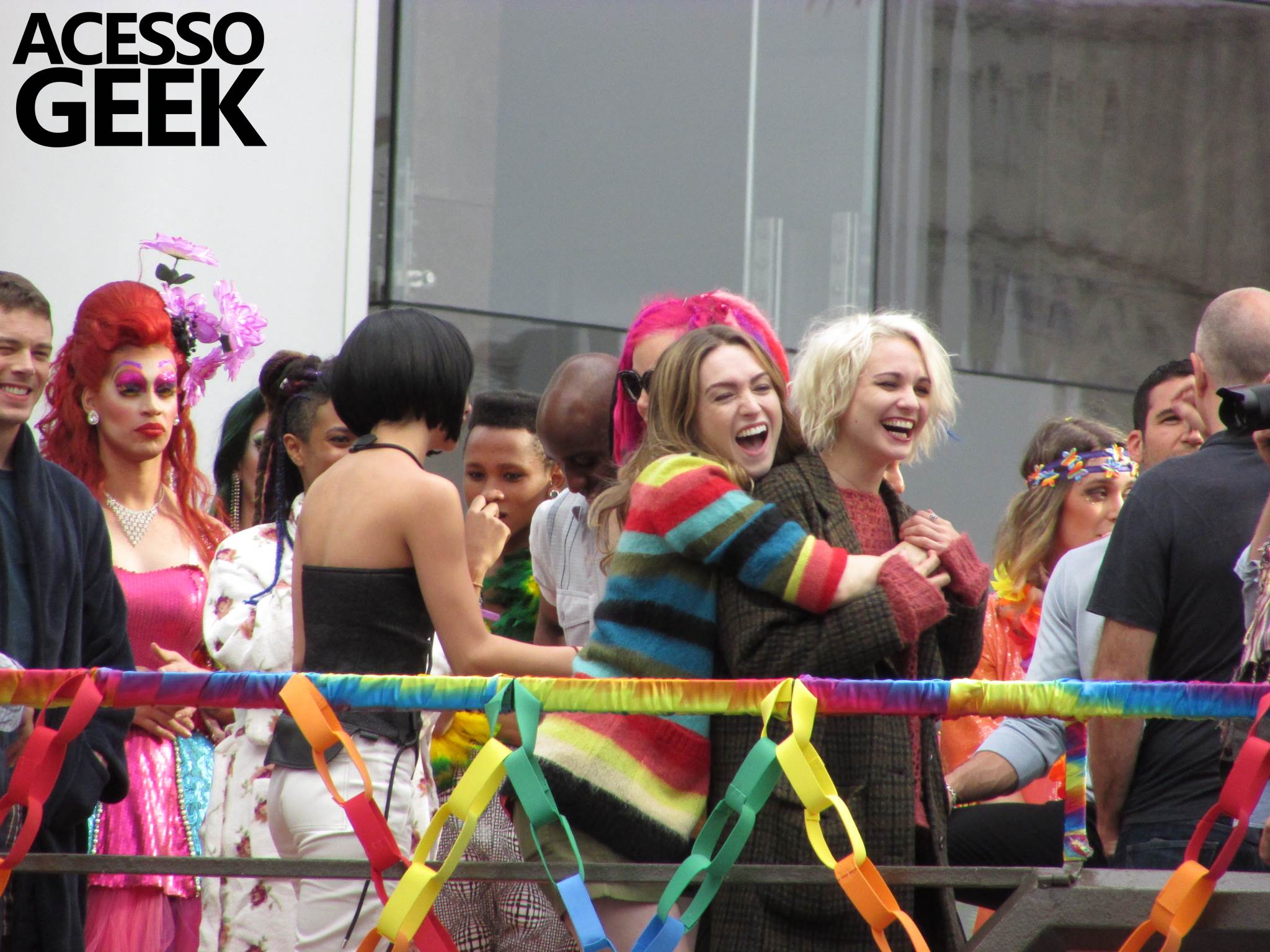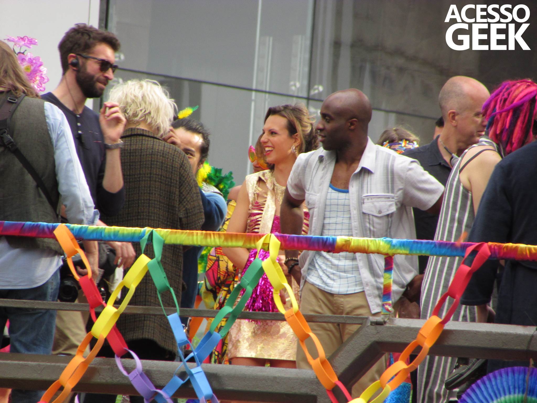 We had the opportunity to follow the recordings that happened last Saturday (28), at Avenida Chucri Zaidan, in São Paulo, more precisely next to the Shopping Morumbi. The producers of the serie, in association with O2 Filmes, mounted a “Trio Elétrico” (Trio Elétrico is the name given to a truck equipped with an extremely high powerful sound system and a musical group or some famous people and music on top of it), it was full of colorful balloons, representing the Gay Pride Parade, that happened on Sunday (28), at Paulista Avenue. Which was also the location of the recordings, as an extension of the recorded scene on Saturday.