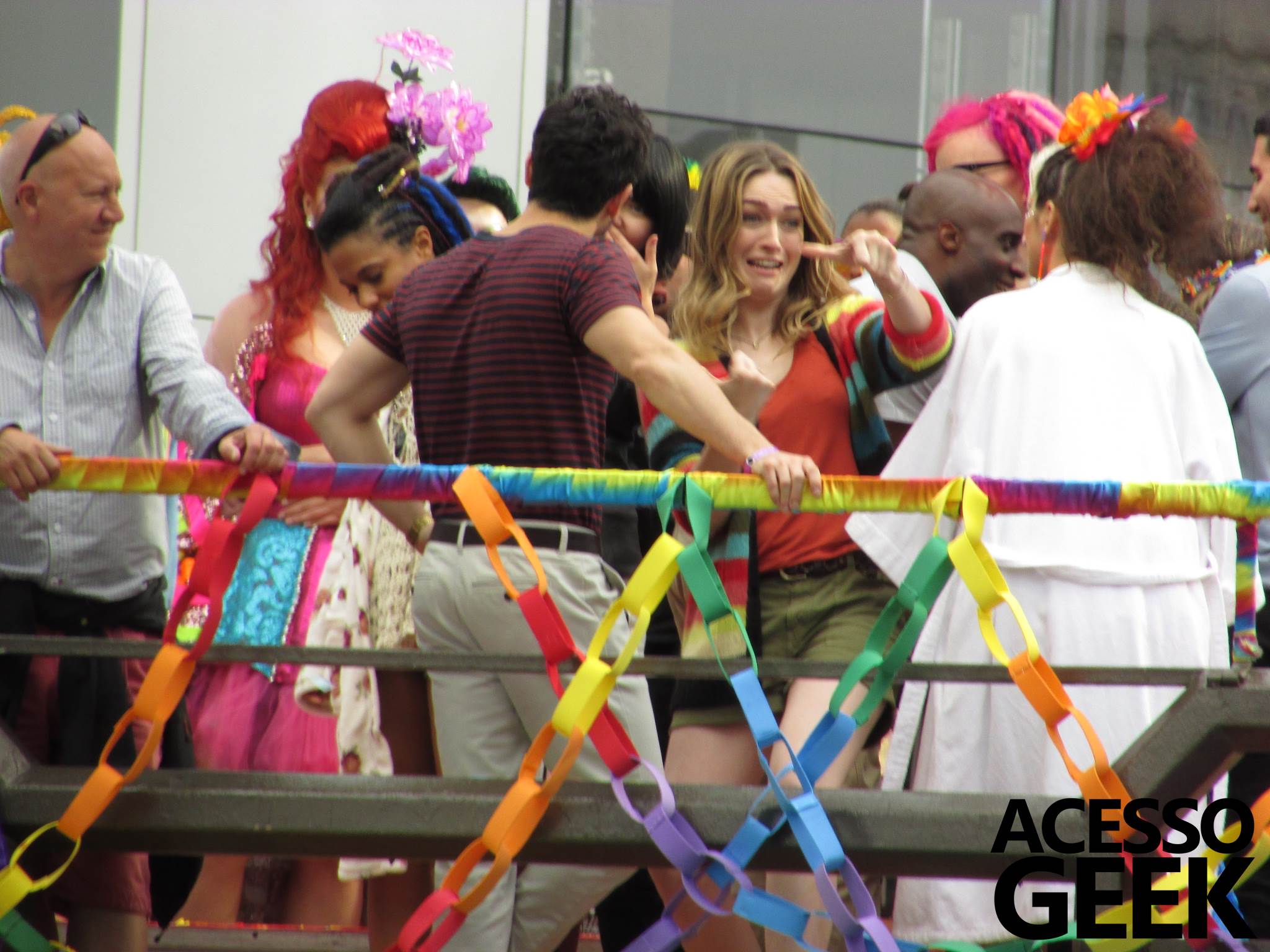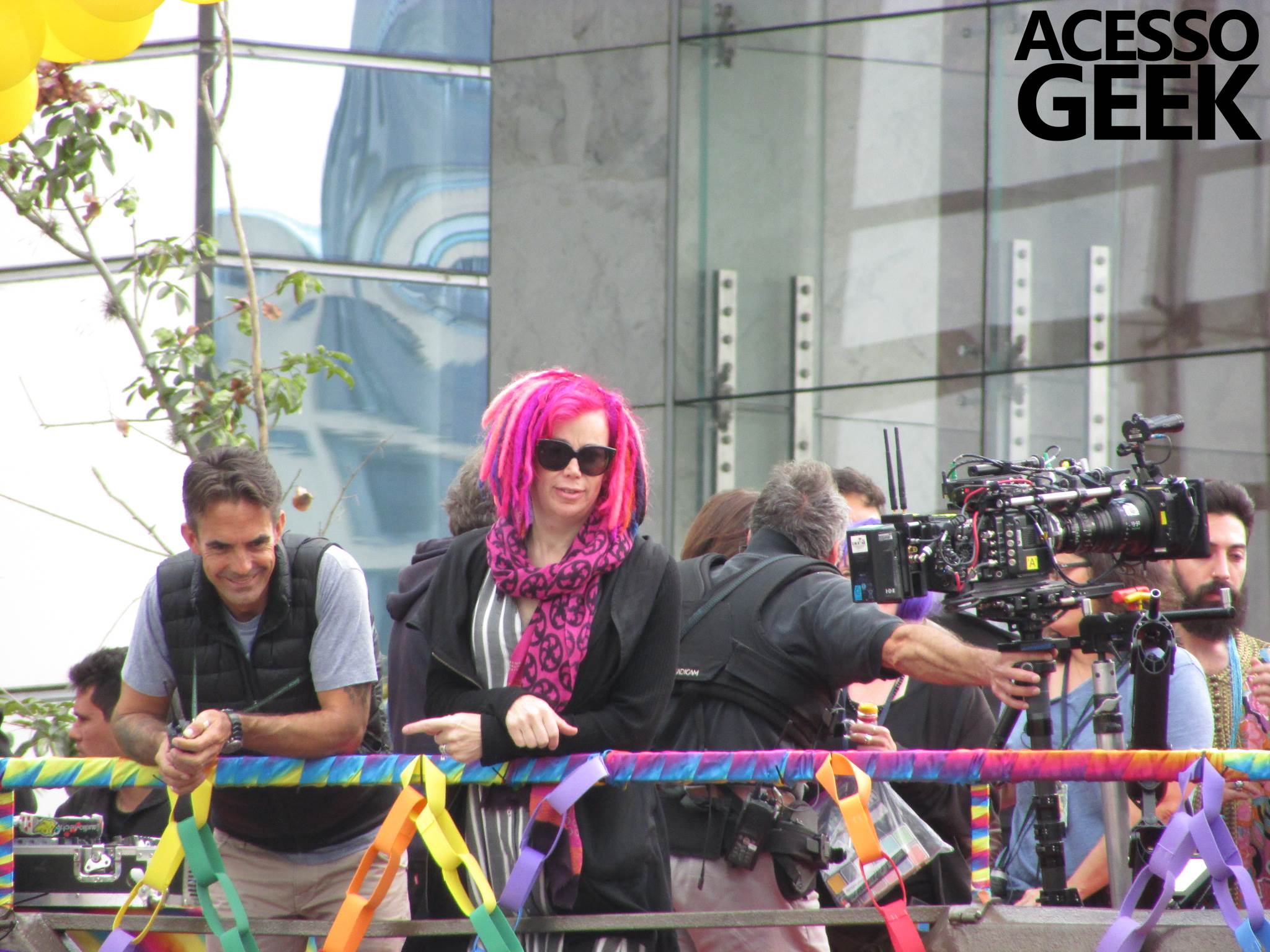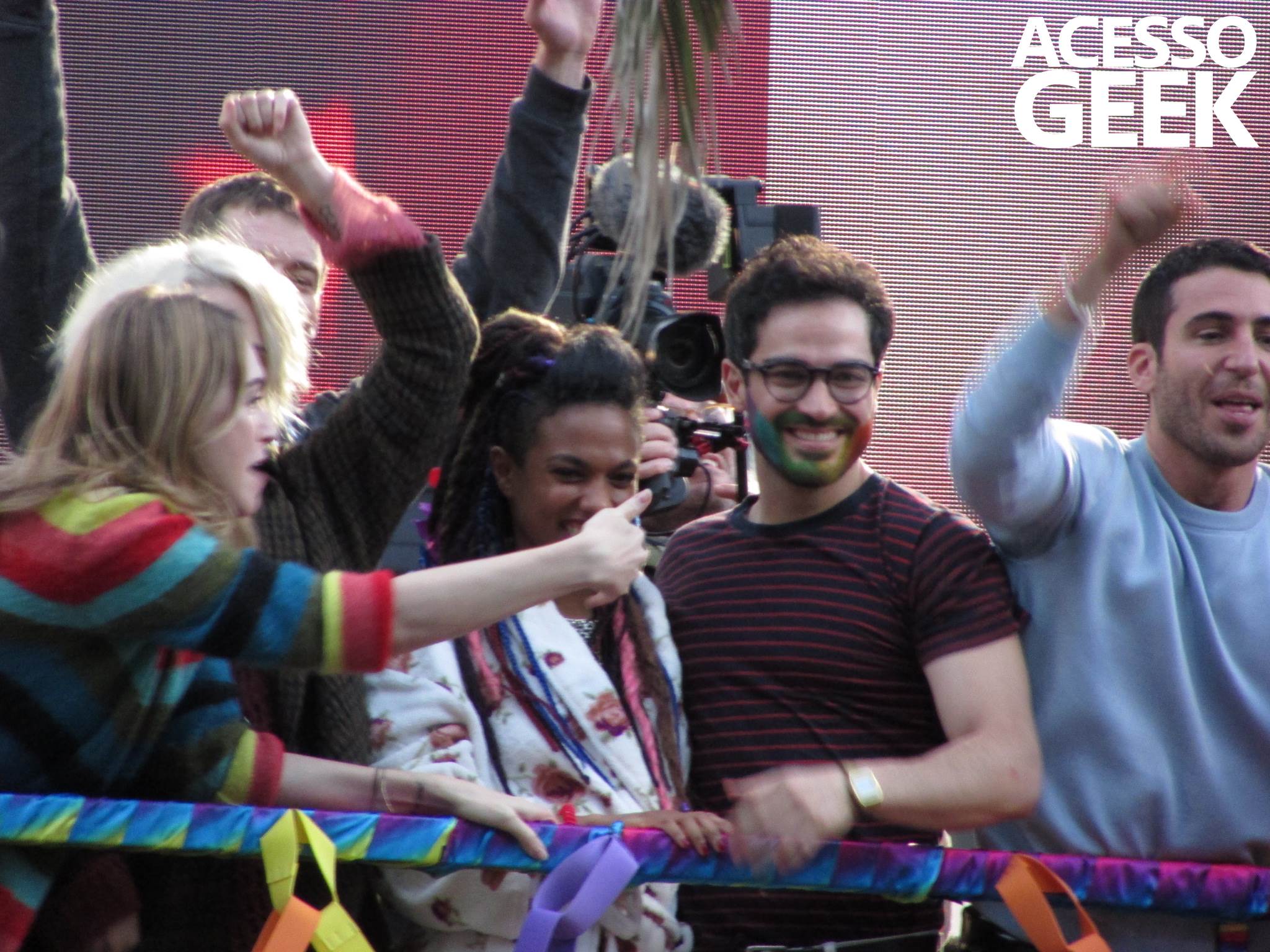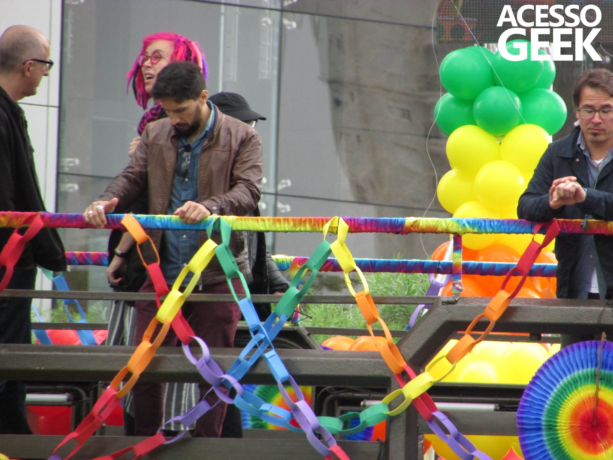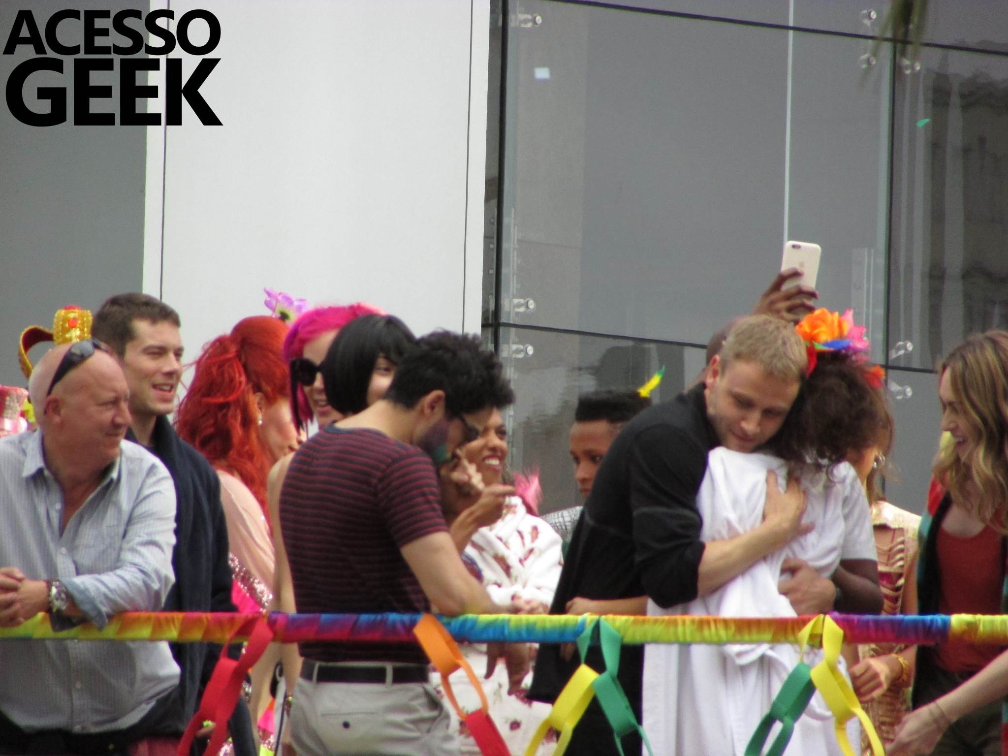 We had the opportunity to follow the recordings that happened last Saturday (28), at Avenida Chucri Zaidan, in São Paulo, more precisely next to the Shopping Morumbi. The producers of the serie, in association with O2 Filmes, mounted a “Trio Elétrico” (Trio Elétrico is the name given to a truck equipped with an extremely high powerful sound system and a musical group or some famous people and music on top of it), it was full of colorful balloons, representing the Gay Pride Parade, that happened on Sunday (28), at Paulista Avenue. Which was also the location of the recordings, as an extension of the recorded scene on Saturday.