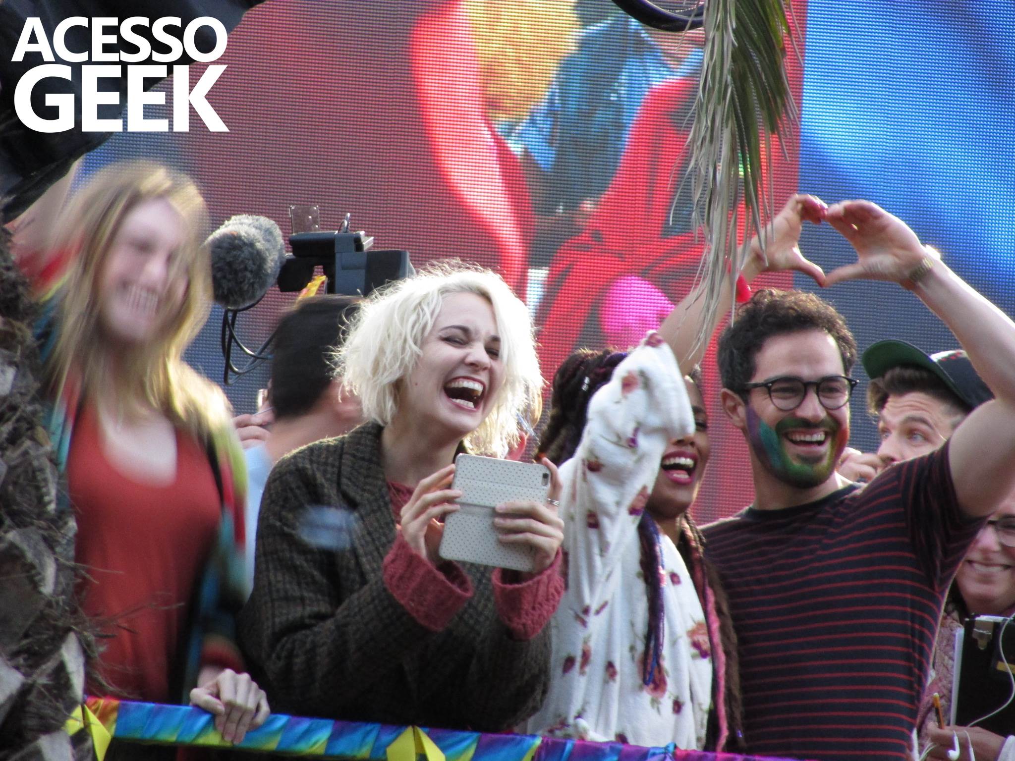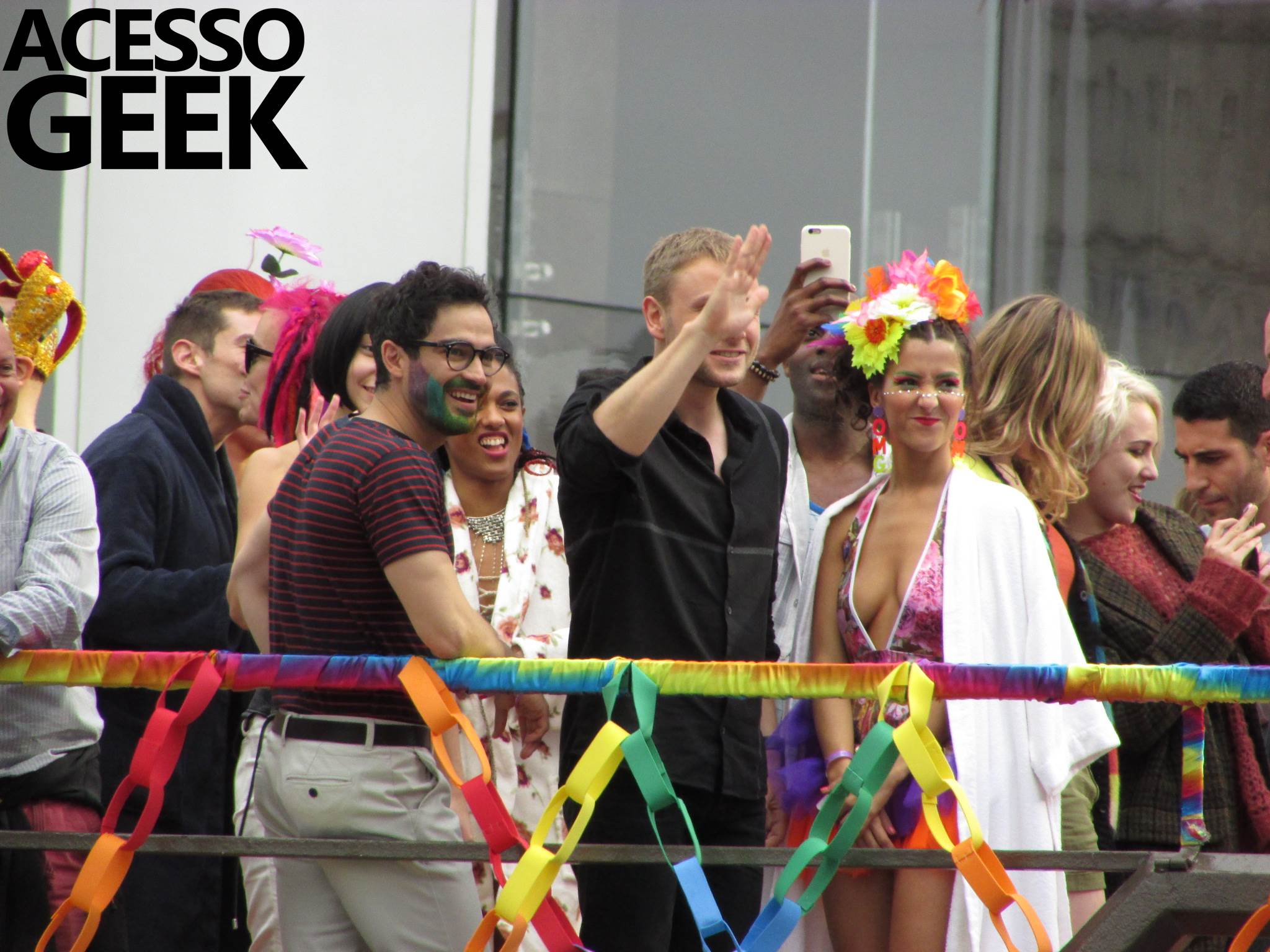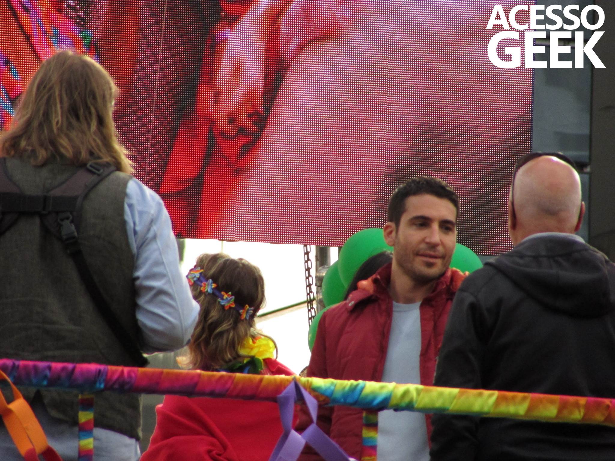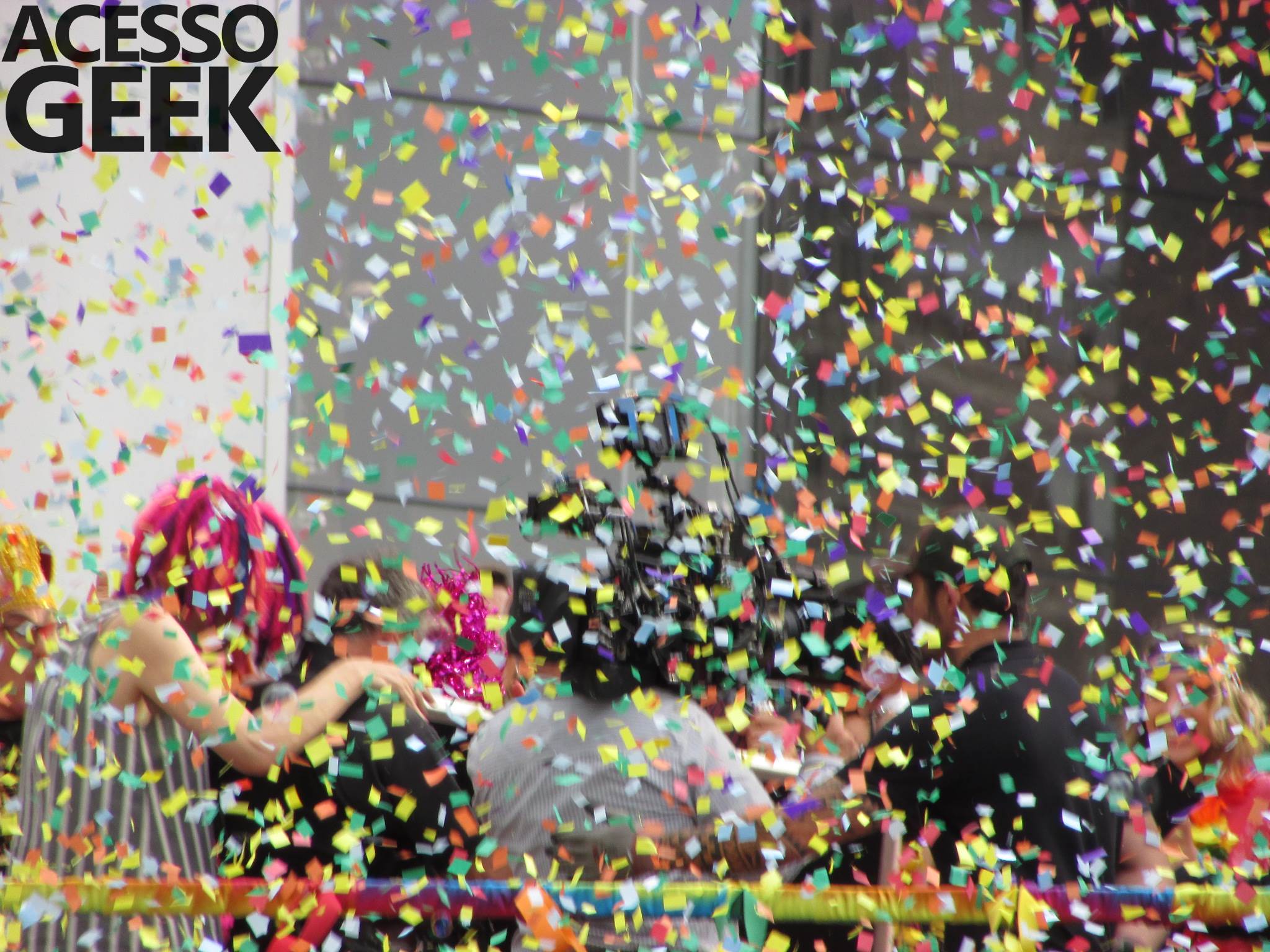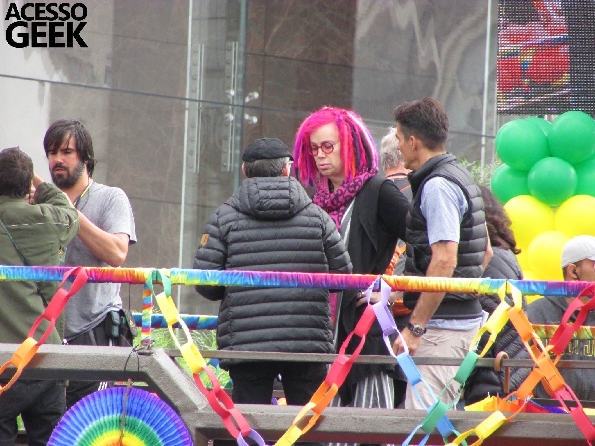 We had the opportunity to follow the recordings that happened last Saturday (28), at Avenida Chucri Zaidan, in São Paulo, more precisely next to the Shopping Morumbi. The producers of the serie, in association with O2 Filmes, mounted a “Trio Elétrico” (Trio Elétrico is the name given to a truck equipped with an extremely high powerful sound system and a musical group or some famous people and music on top of it), it was full of colorful balloons, representing the Gay Pride Parade, that happened on Sunday (28), at Paulista Avenue. Which was also the location of the recordings, as an extension of the recorded scene on Saturday.