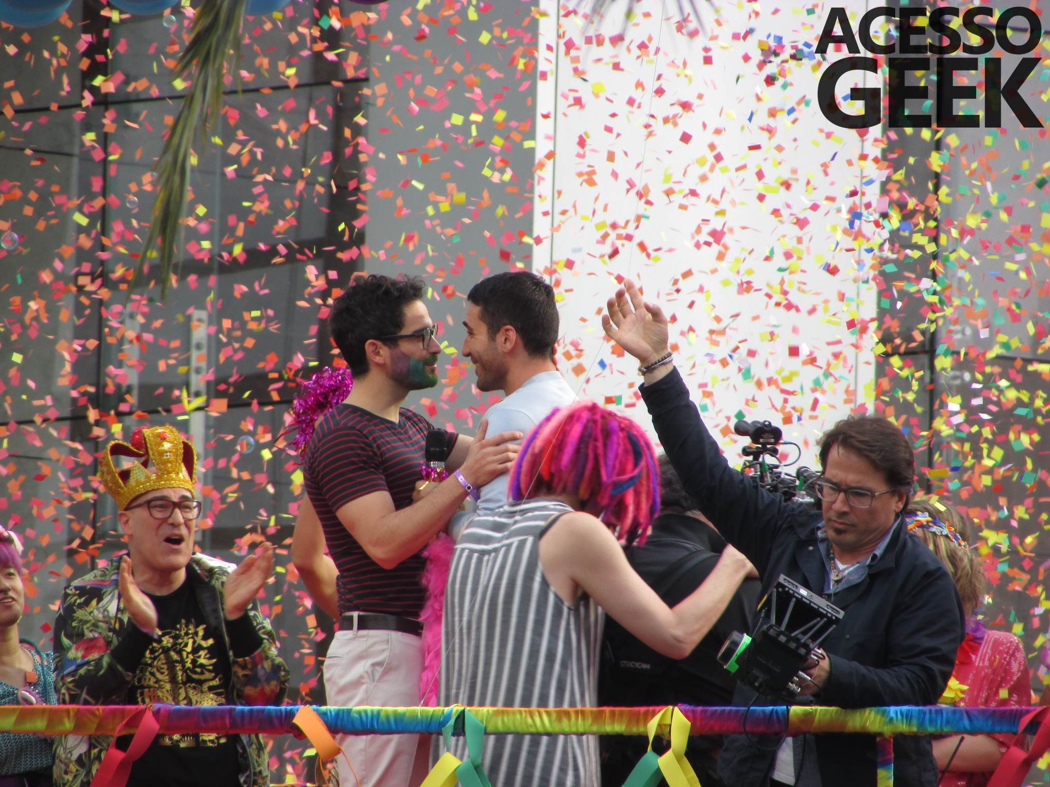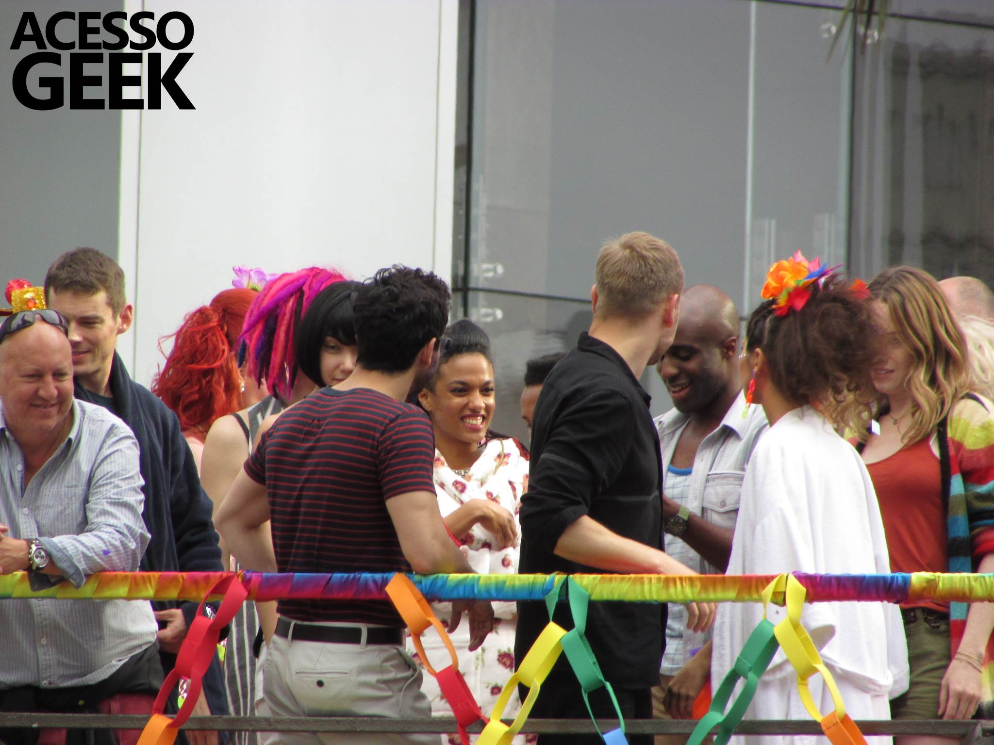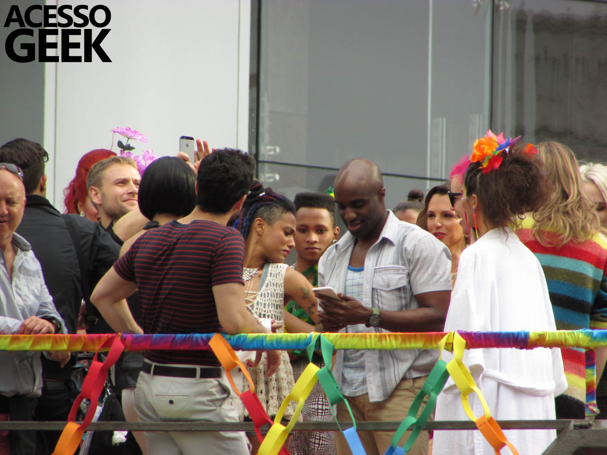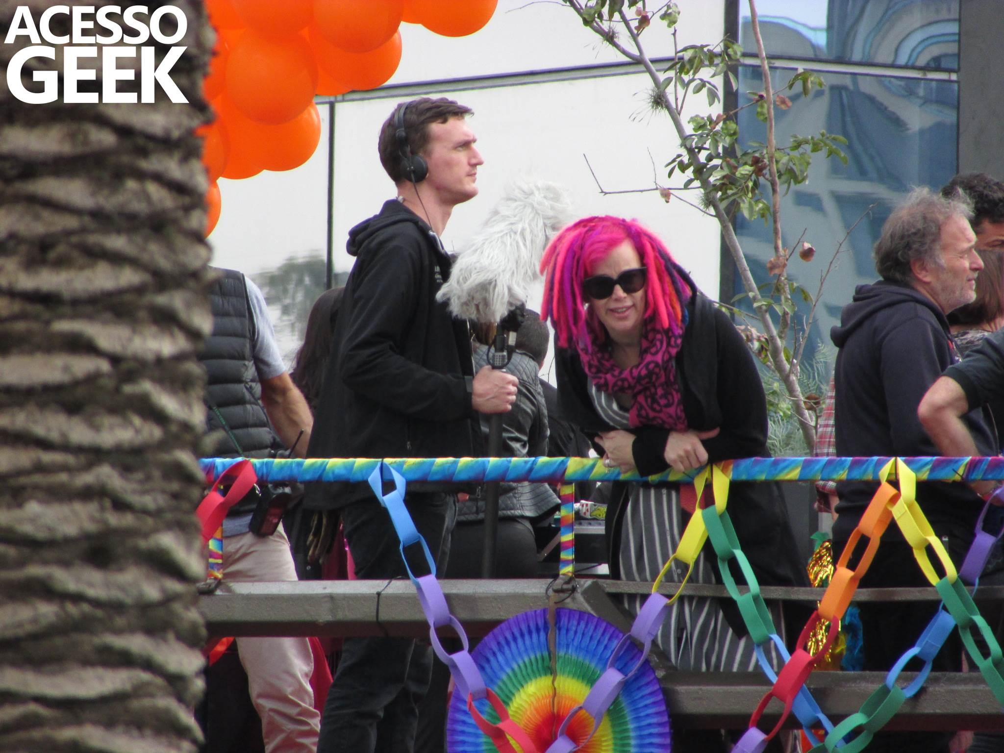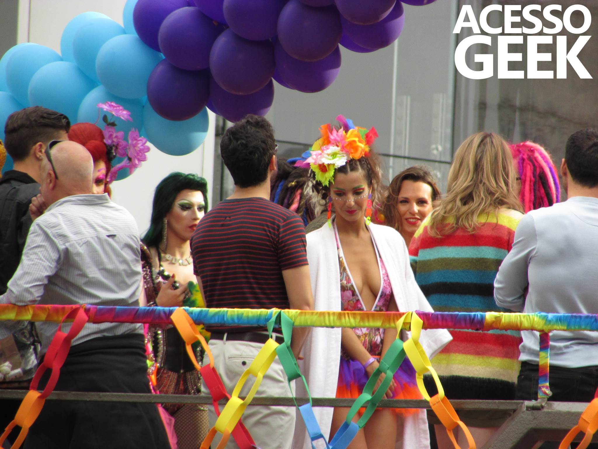 We had the opportunity to follow the recordings that happened last Saturday (28), at Avenida Chucri Zaidan, in São Paulo, more precisely next to the Shopping Morumbi. The producers of the serie, in association with O2 Filmes, mounted a “Trio Elétrico” (Trio Elétrico is the name given to a truck equipped with an extremely high powerful sound system and a musical group or some famous people and music on top of it), it was full of colorful balloons, representing the Gay Pride Parade, that happened on Sunday (28), at Paulista Avenue. Which was also the location of the recordings, as an extension of the recorded scene on Saturday.