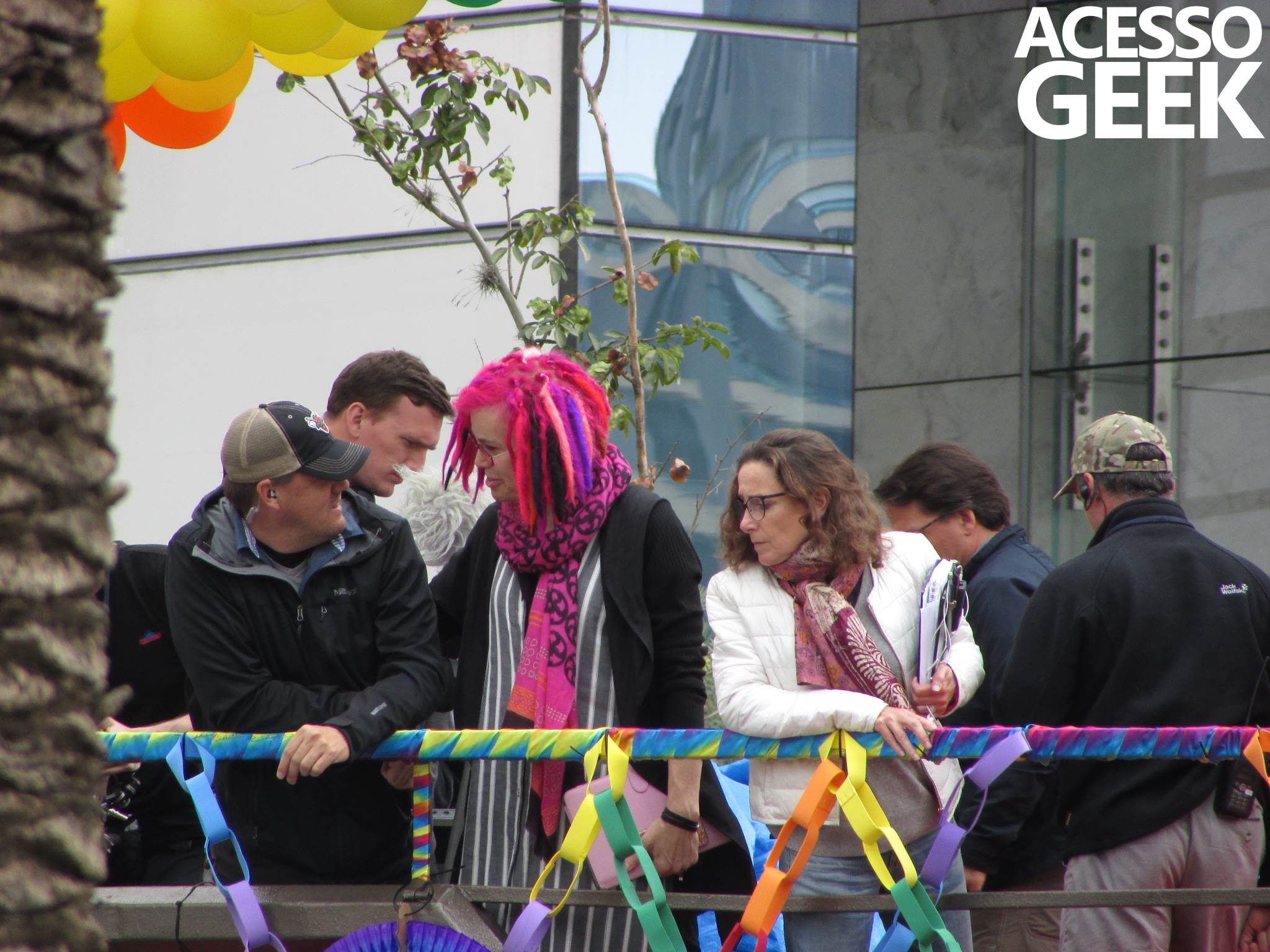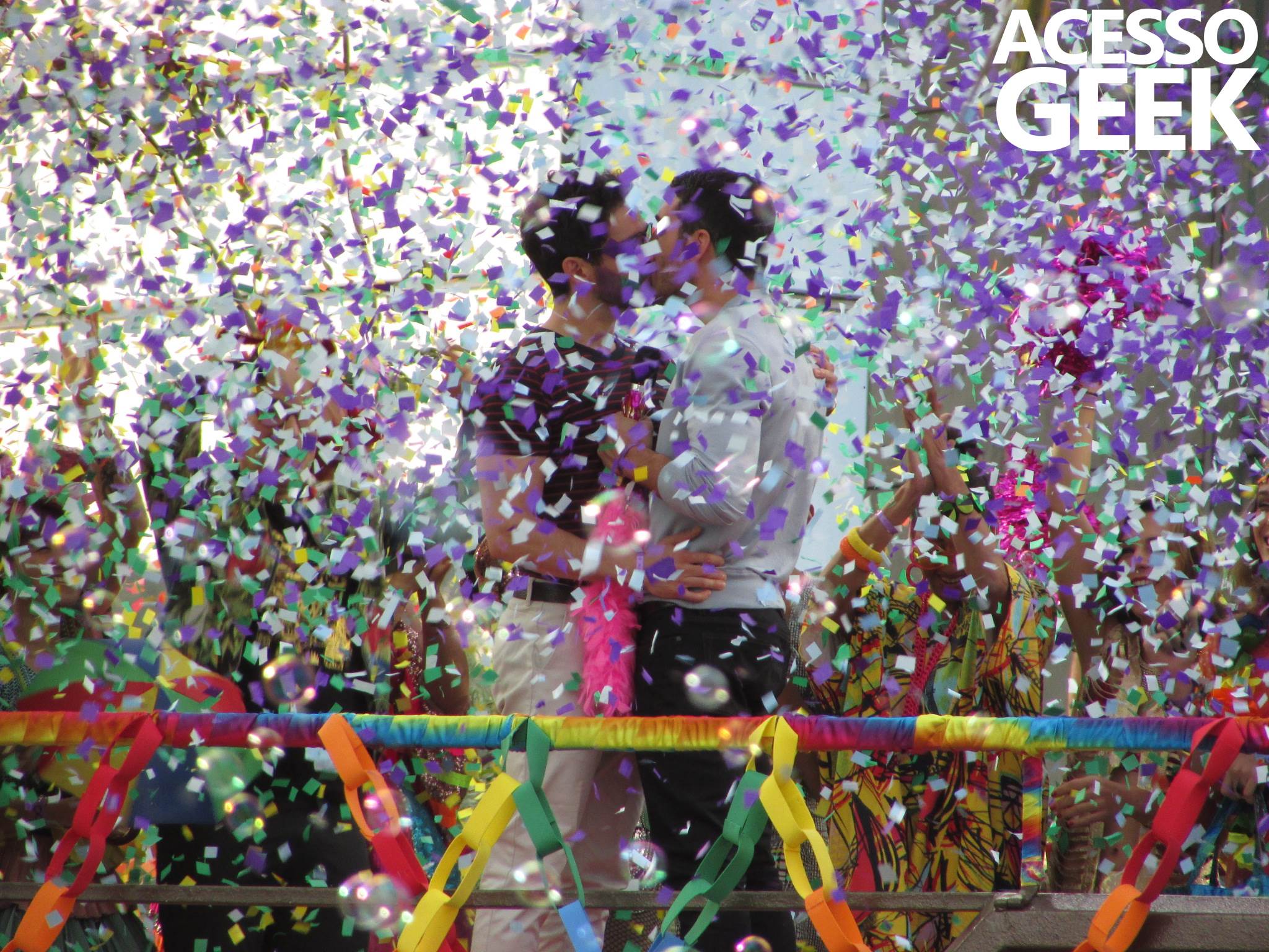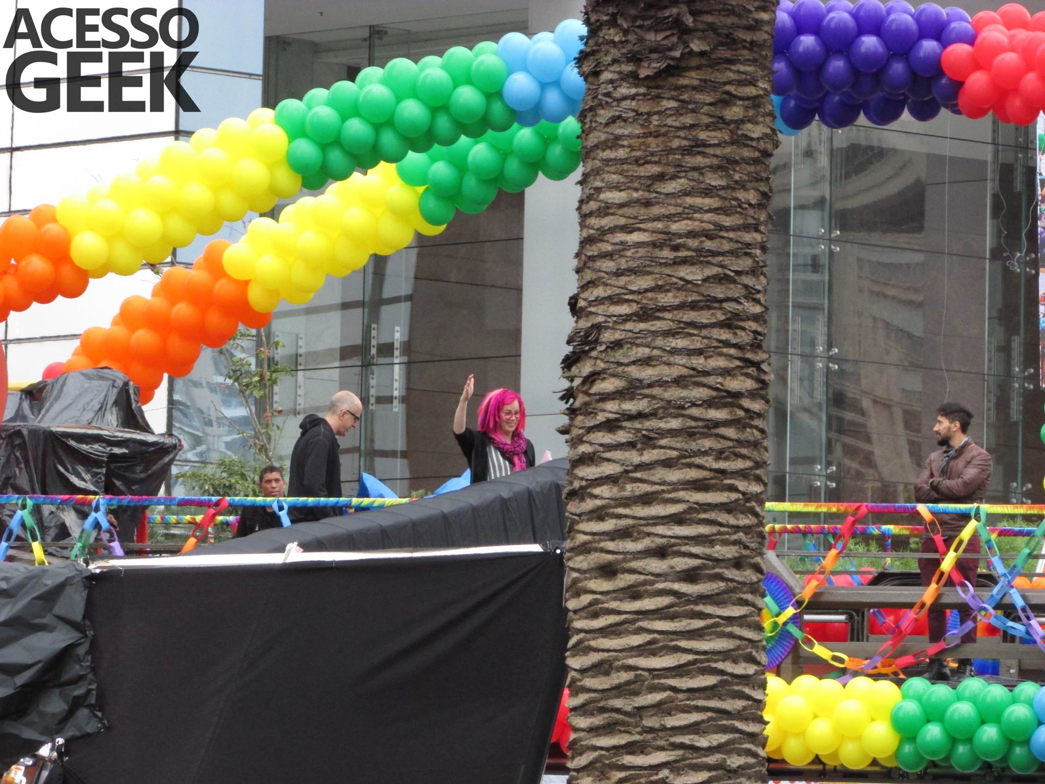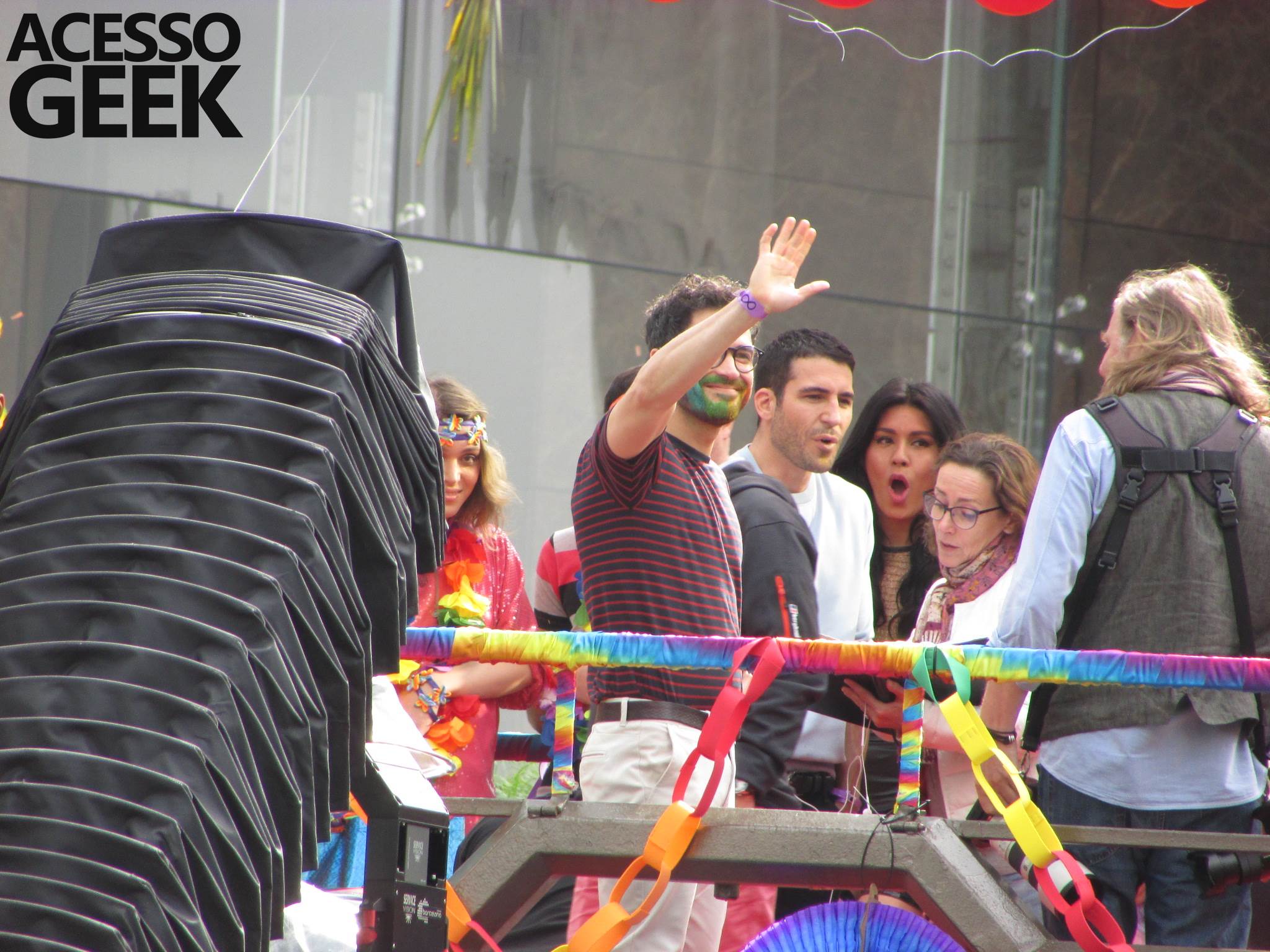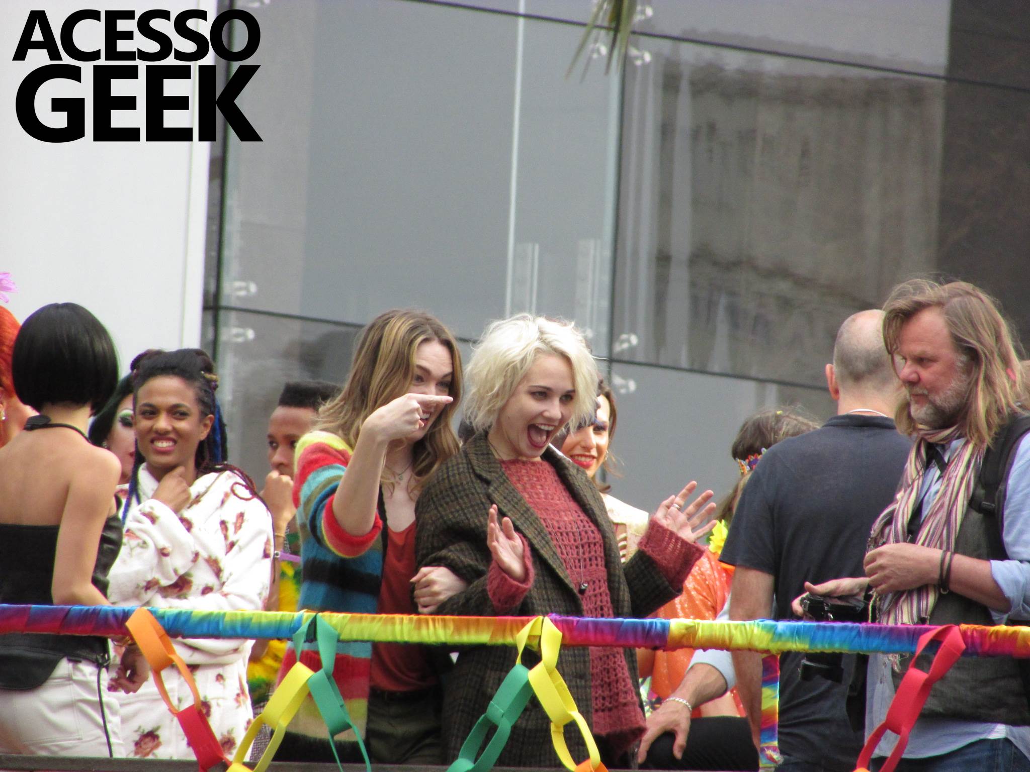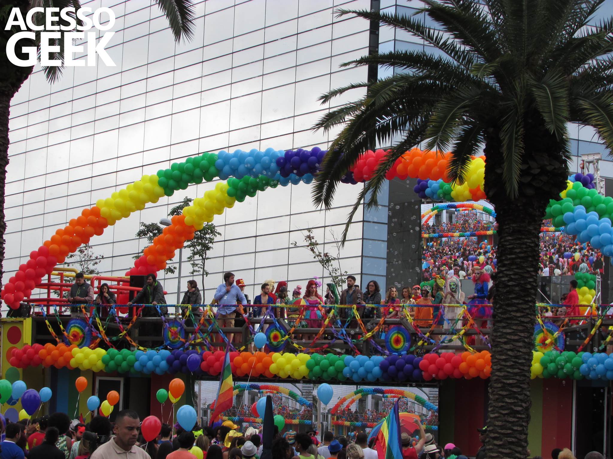 We had the opportunity to follow the recordings that happened last Saturday (28), at Avenida Chucri Zaidan, in São Paulo, more precisely next to the Shopping Morumbi. The producers of the serie, in association with O2 Filmes, mounted a “Trio Elétrico” (Trio Elétrico is the name given to a truck equipped with an extremely high powerful sound system and a musical group or some famous people and music on top of it), it was full of colorful balloons, representing the Gay Pride Parade, that happened on Sunday (28), at Paulista Avenue. Which was also the location of the recordings, as an extension of the recorded scene on Saturday.