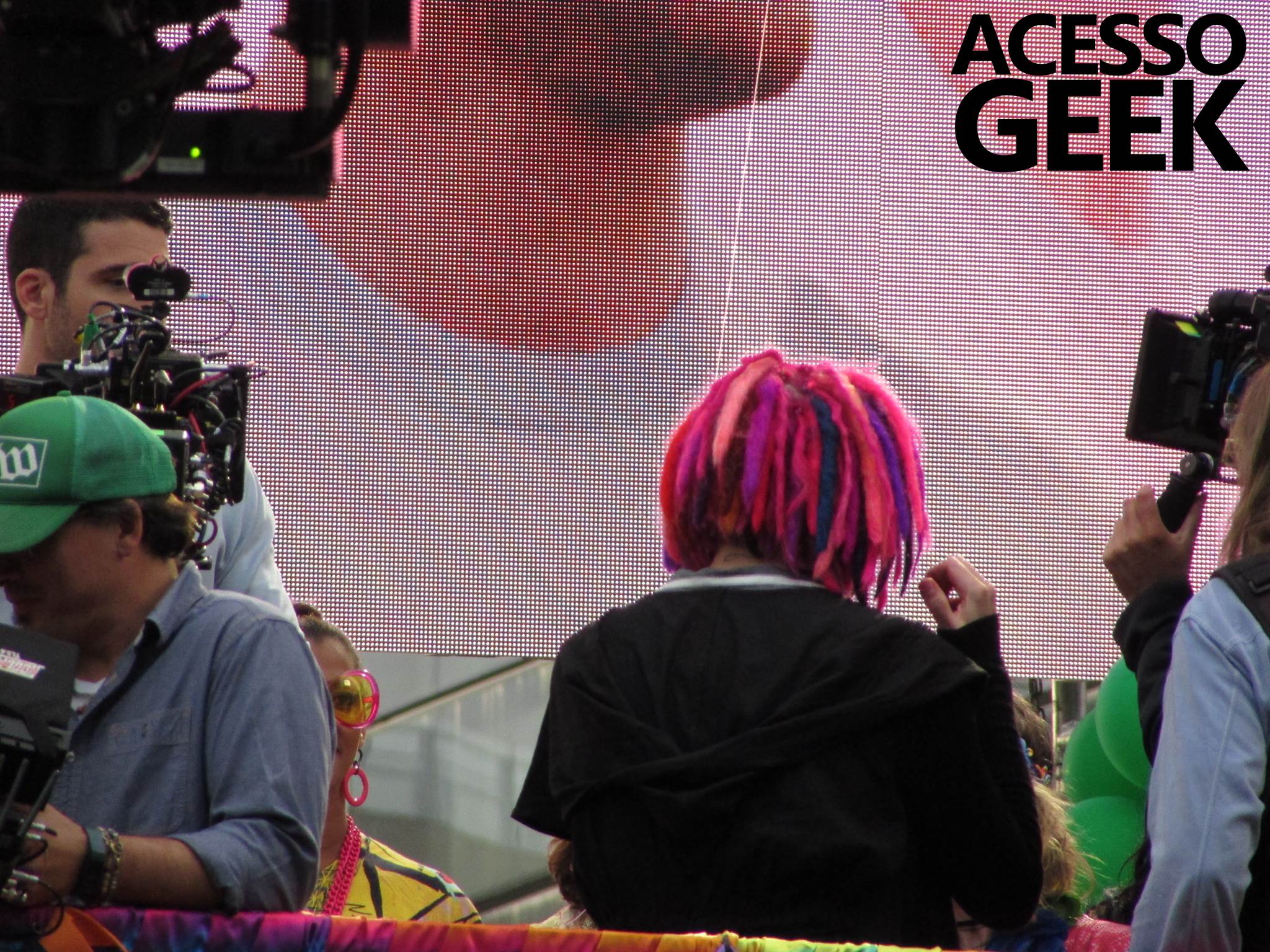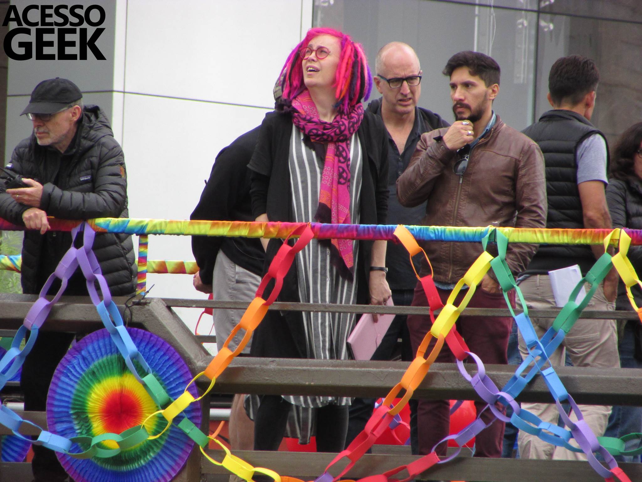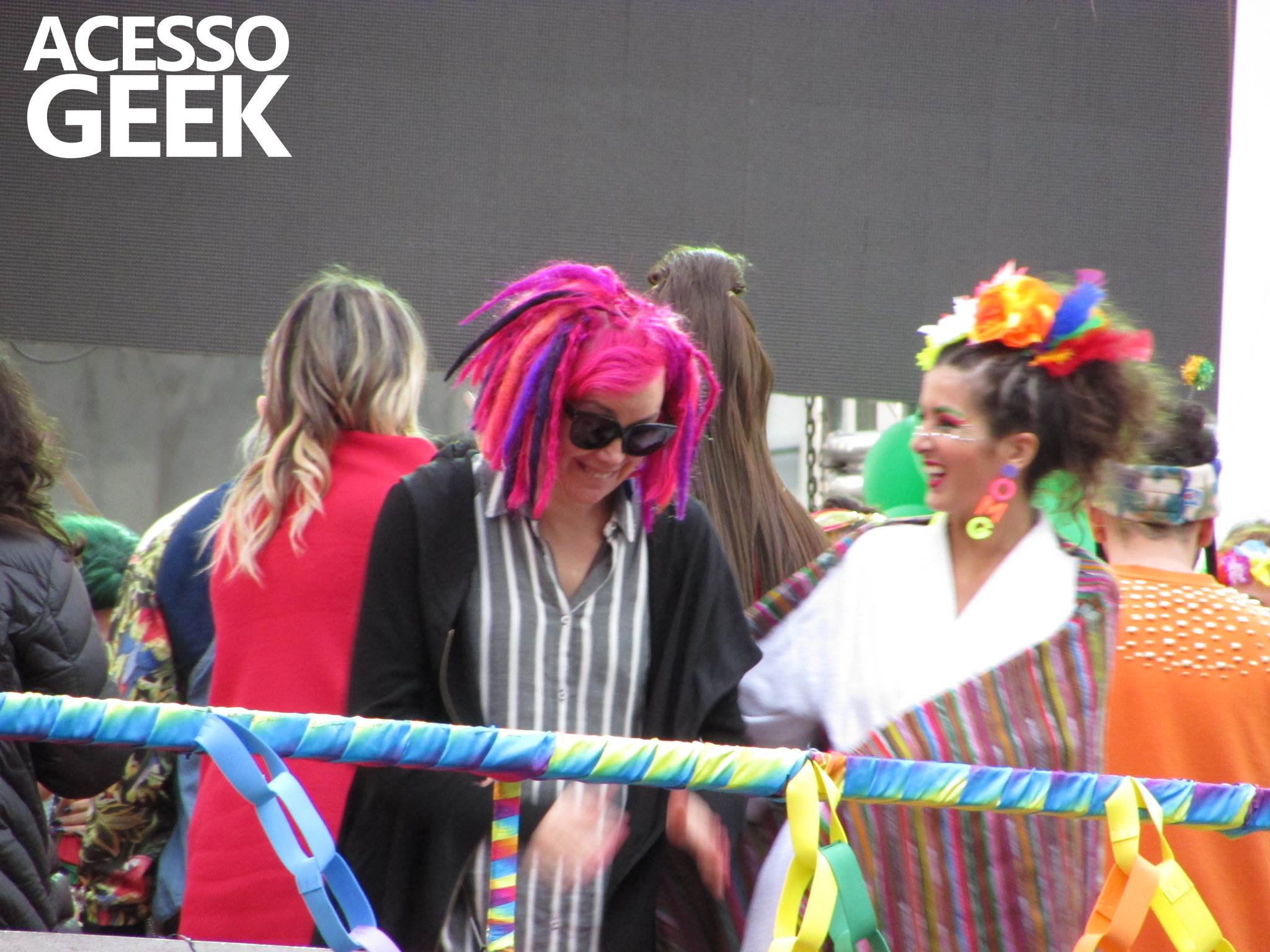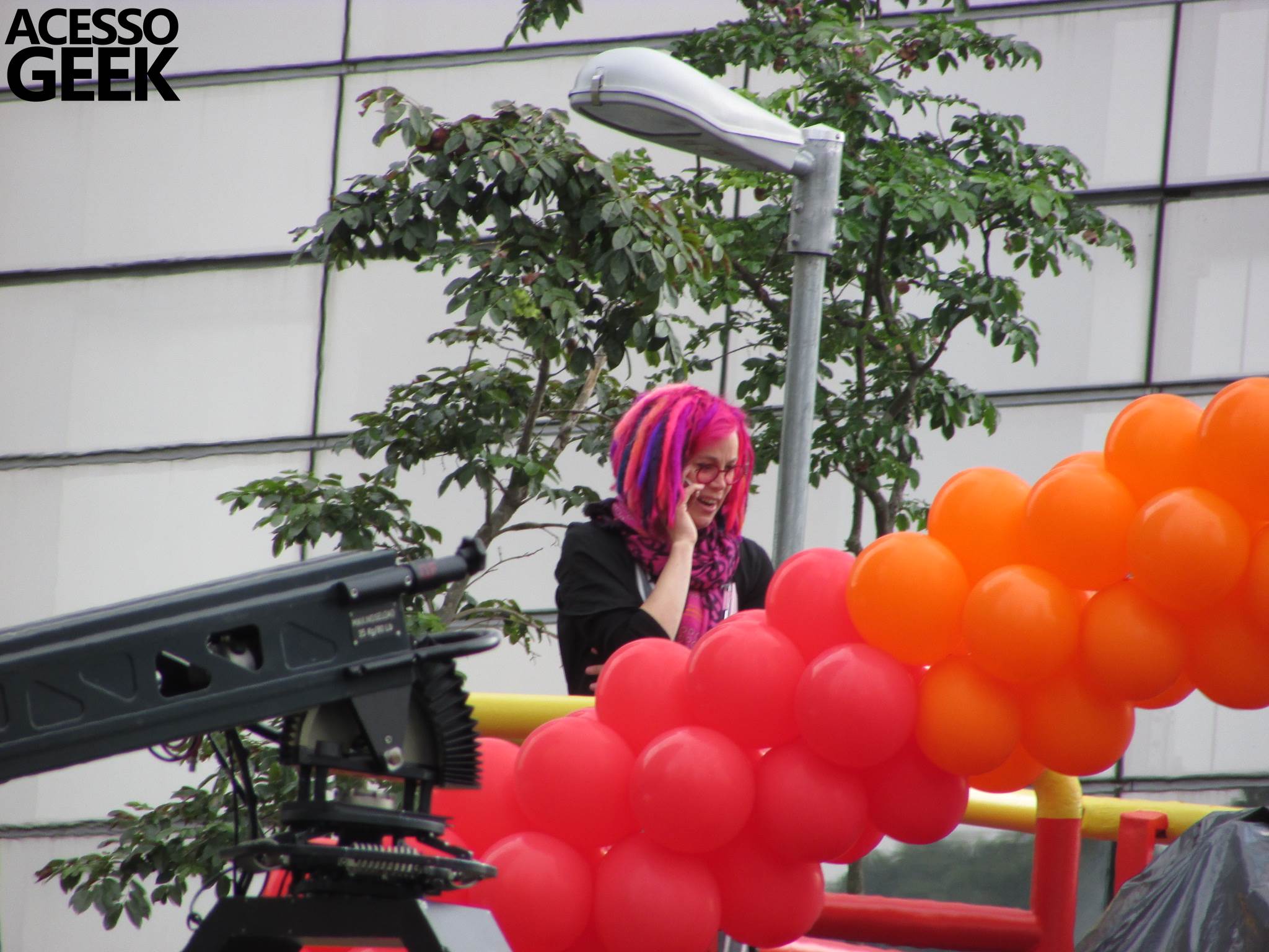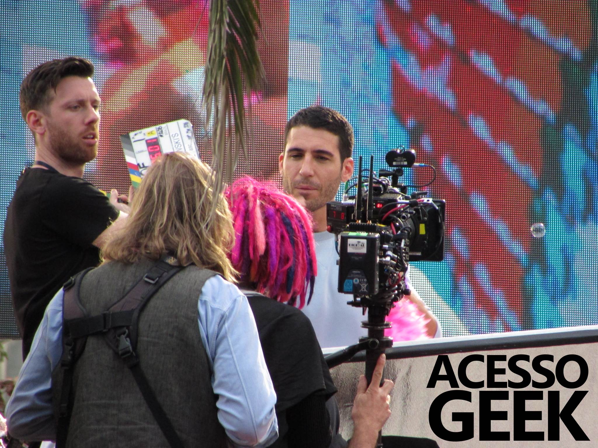 We had the opportunity to follow the recordings that happened last Saturday (28), at Avenida Chucri Zaidan, in São Paulo, more precisely next to the Shopping Morumbi. The producers of the serie, in association with O2 Filmes, mounted a “Trio Elétrico” (Trio Elétrico is the name given to a truck equipped with an extremely high powerful sound system and a musical group or some famous people and music on top of it), it was full of colorful balloons, representing the Gay Pride Parade, that happened on Sunday (28), at Paulista Avenue. Which was also the location of the recordings, as an extension of the recorded scene on Saturday.