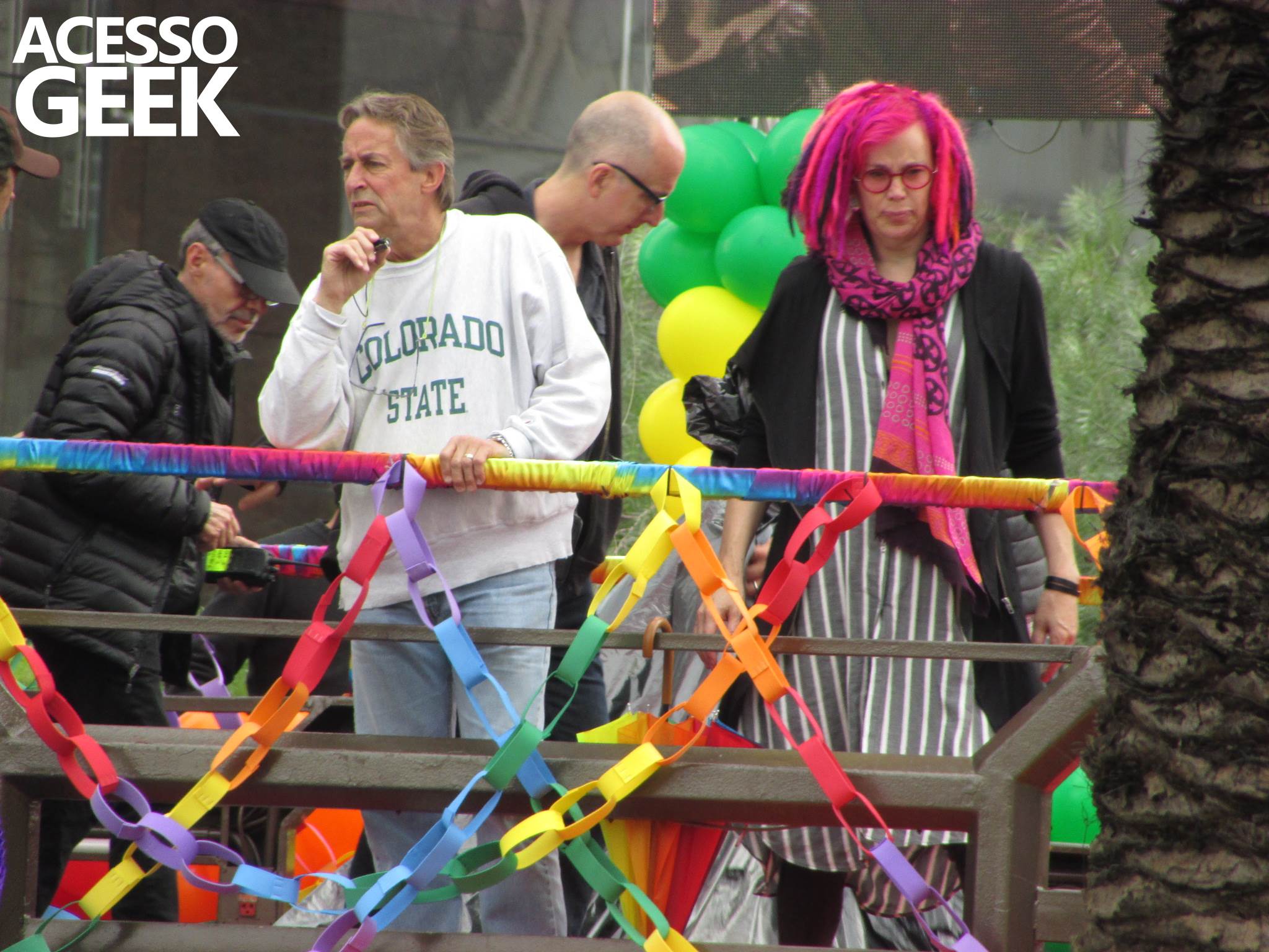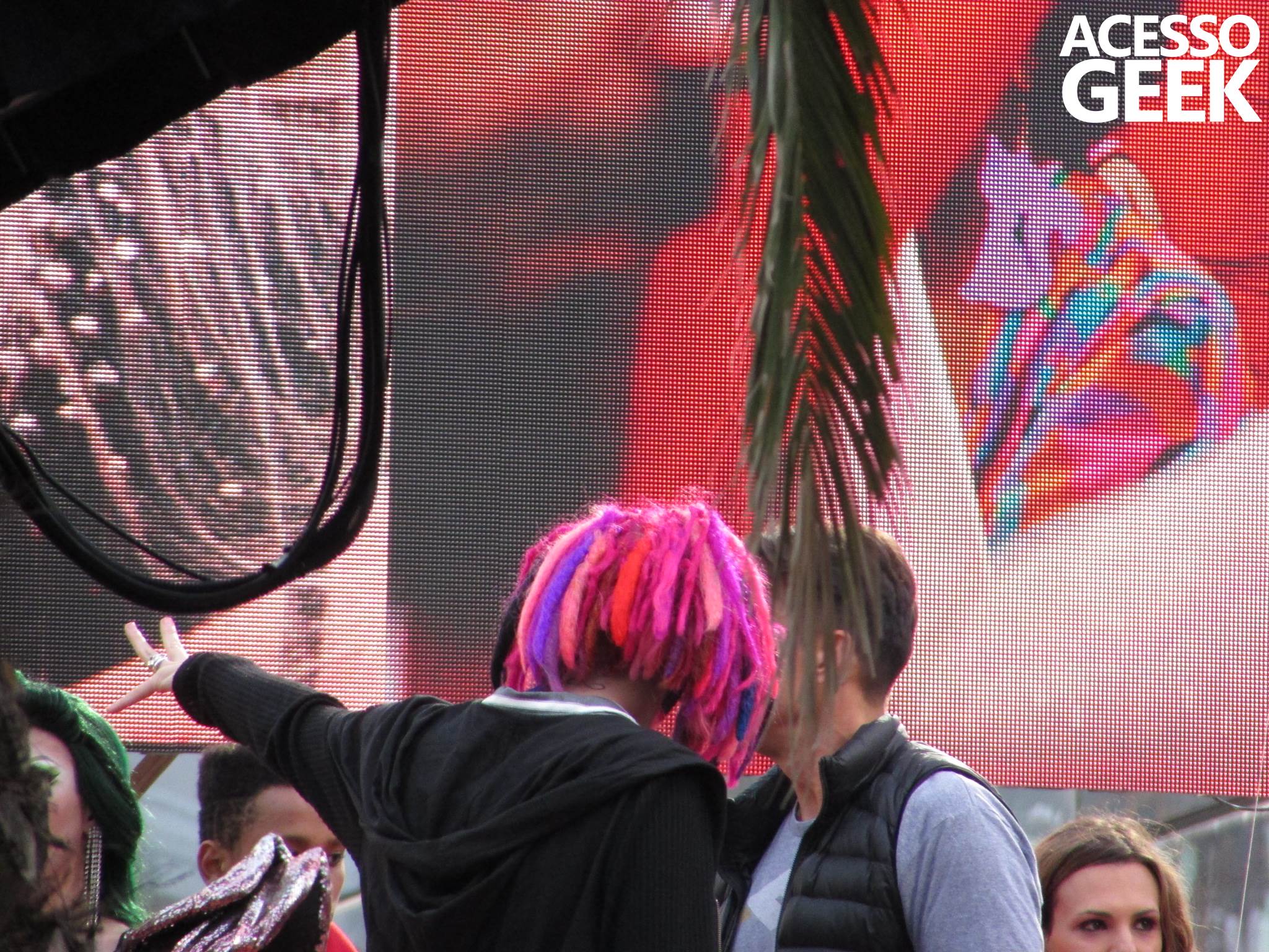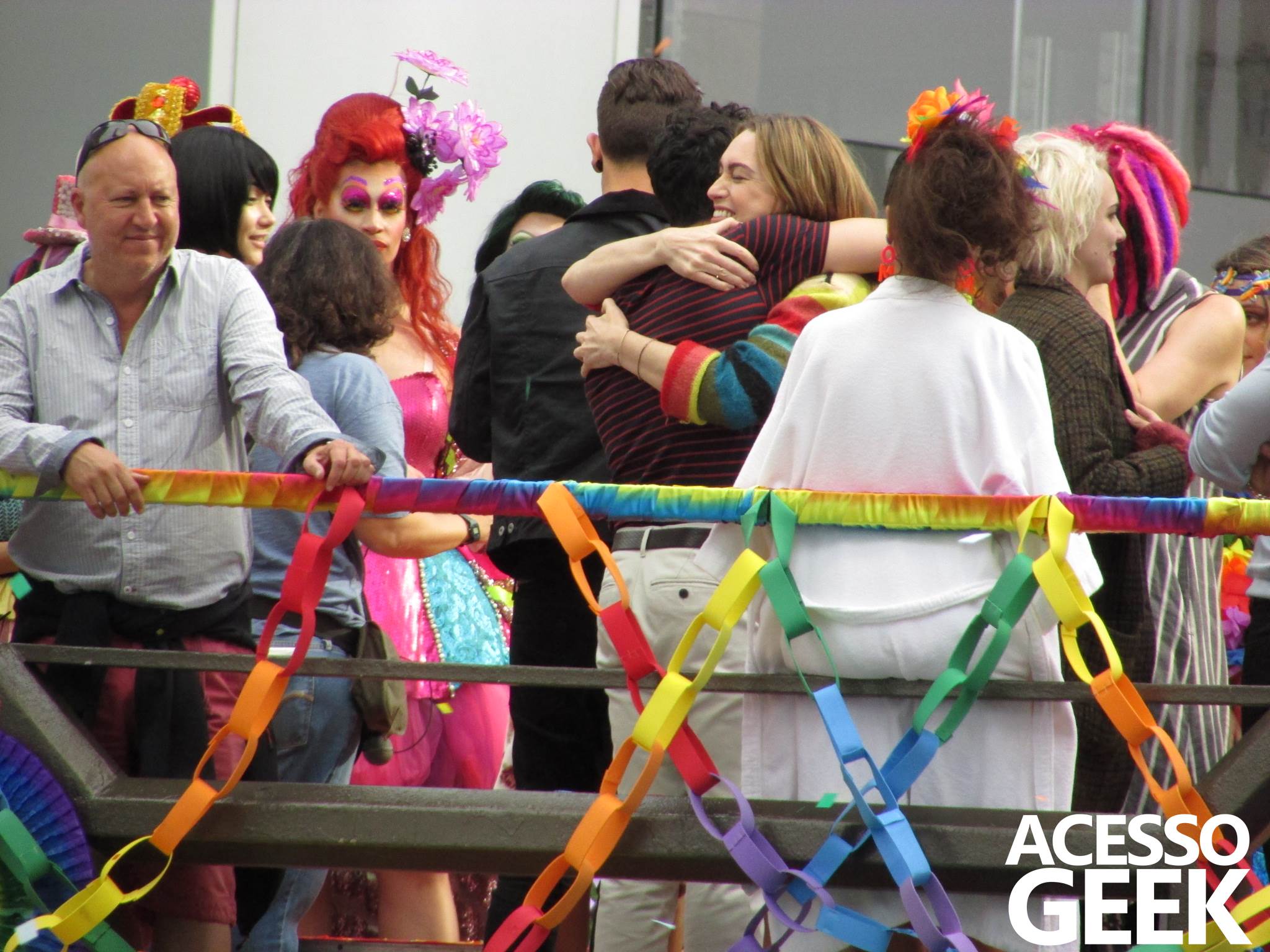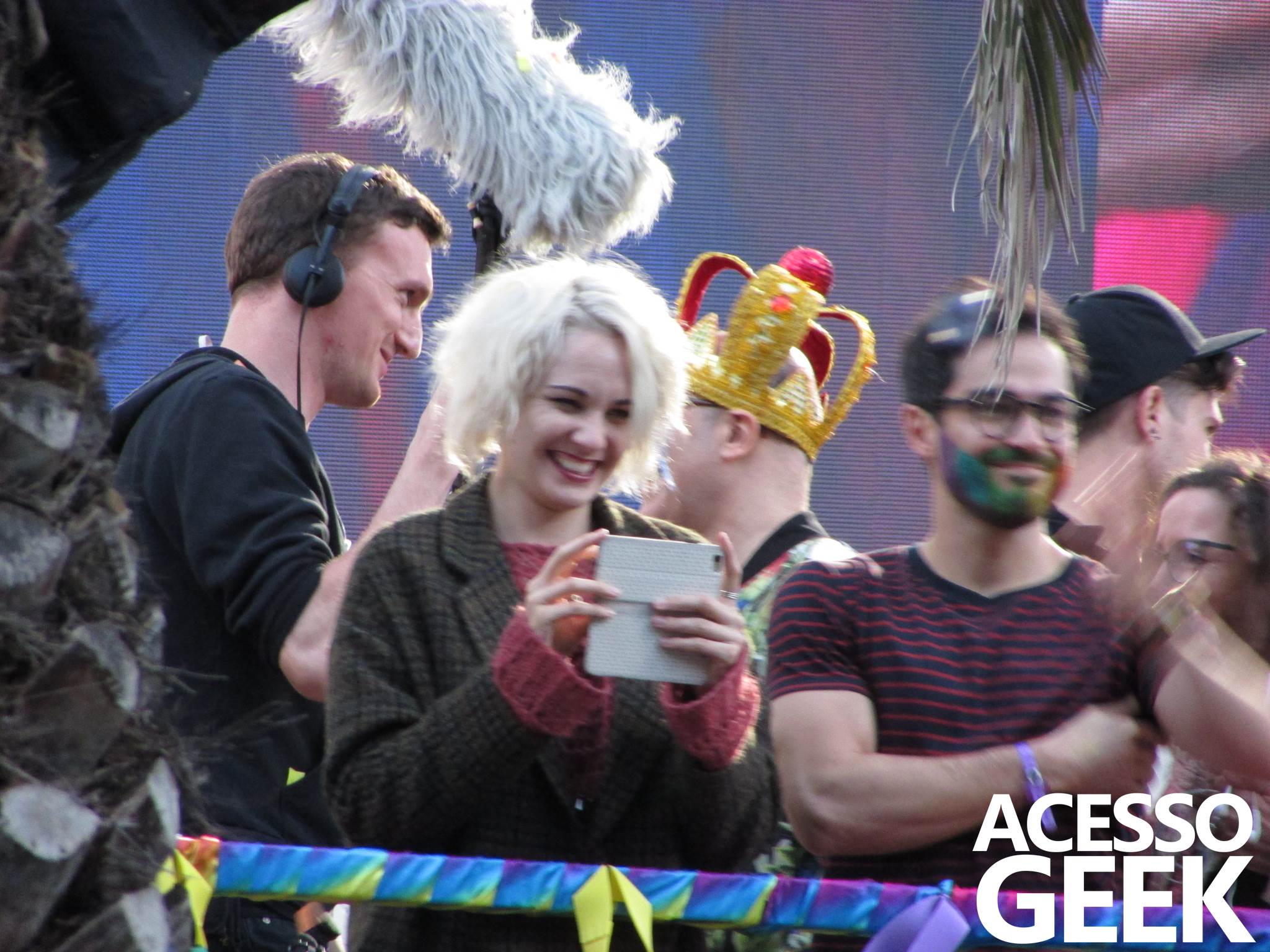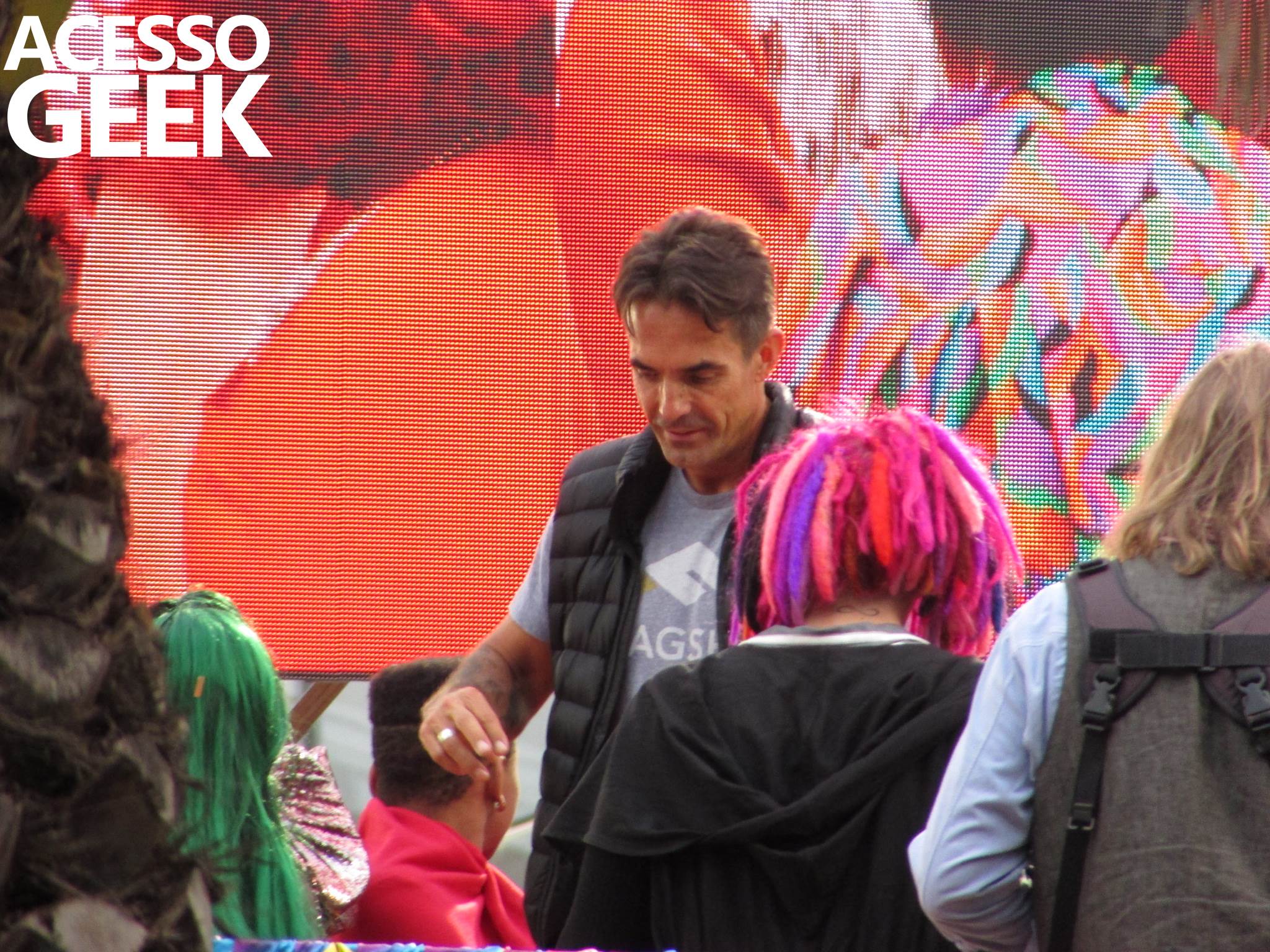 We had the opportunity to follow the recordings that happened last Saturday (28), at Avenida Chucri Zaidan, in São Paulo, more precisely next to the Shopping Morumbi. The producers of the serie, in association with O2 Filmes, mounted a “Trio Elétrico” (Trio Elétrico is the name given to a truck equipped with an extremely high powerful sound system and a musical group or some famous people and music on top of it), it was full of colorful balloons, representing the Gay Pride Parade, that happened on Sunday (28), at Paulista Avenue. Which was also the location of the recordings, as an extension of the recorded scene on Saturday.