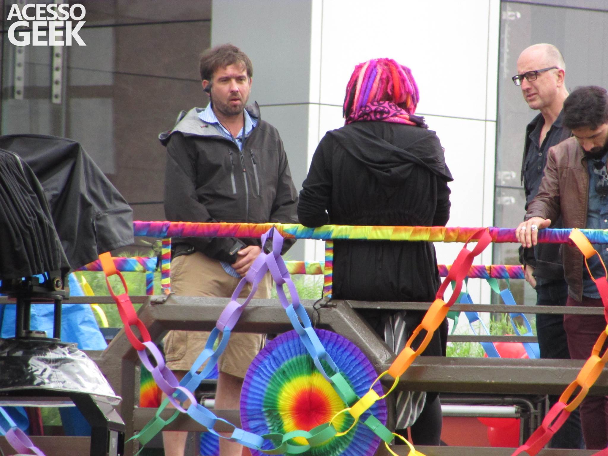 Tivemos a oportunidade de acompanhar as gravações que aconteceu no ultimo sábado (28), na Avenida Chucri Zaidan, mais precisamente ao lado do Shopping Morumbi. Os produtores da série, em parceria com a O2 Filmes, montaram um trio elétrico cheio de balões reproduzindo a Parada Gay, que aconteceu no domingo (28), na Avenida Paulista. Que também foi ambiente de gravações, mais precisamente uma extensão da cena gravada no sábado.