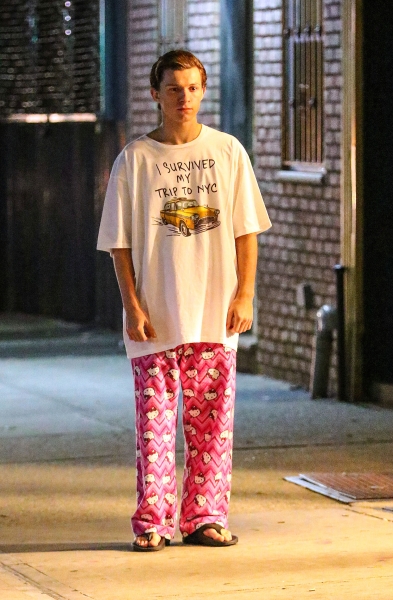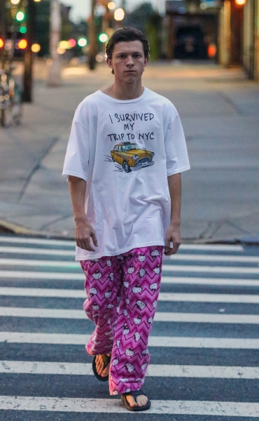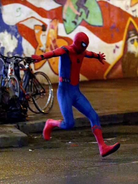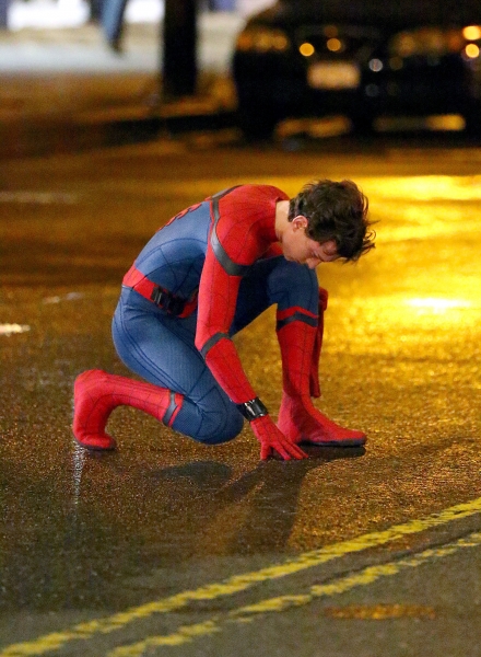 Após o termino das filmagens em Atlanta, Spider-Man: Homecoming começou as filmagens pelas ruas de Nova York. Nas primeiras imagens da nova locação é possível ver Peter Parker (Tom Holland) andando pelas ruas com um pijama da Hello Kitty. Confira: