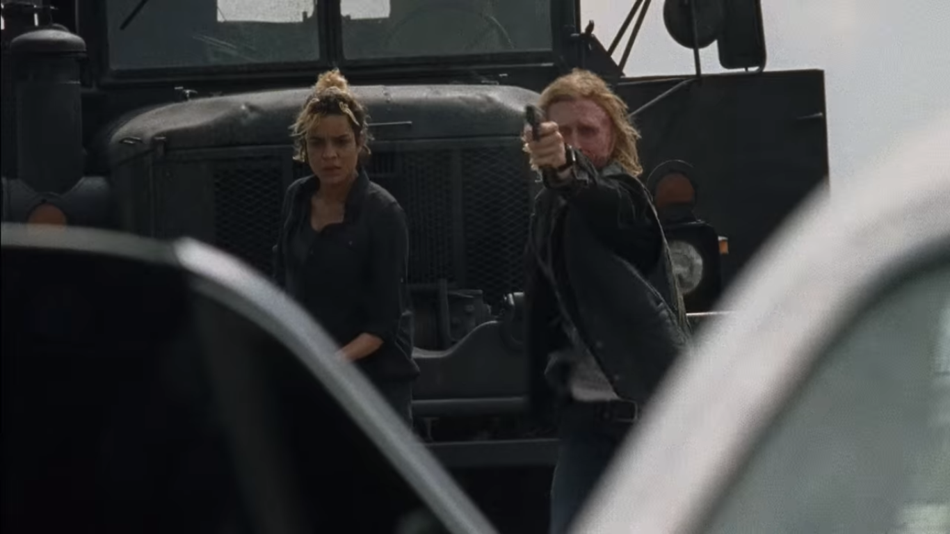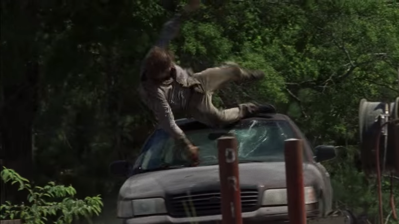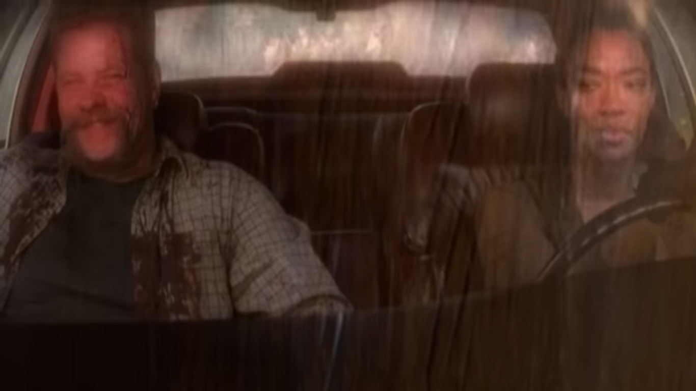 Uma batida de carro acontece e o carro fica de frente para um caminhão e duas motos. O caminhão parece ser do grupo de Negan, que vimos na sexta temporada. Talvez o motorista do carro, que não dá para ser identificado pelo trailer, estava tentando fugir.