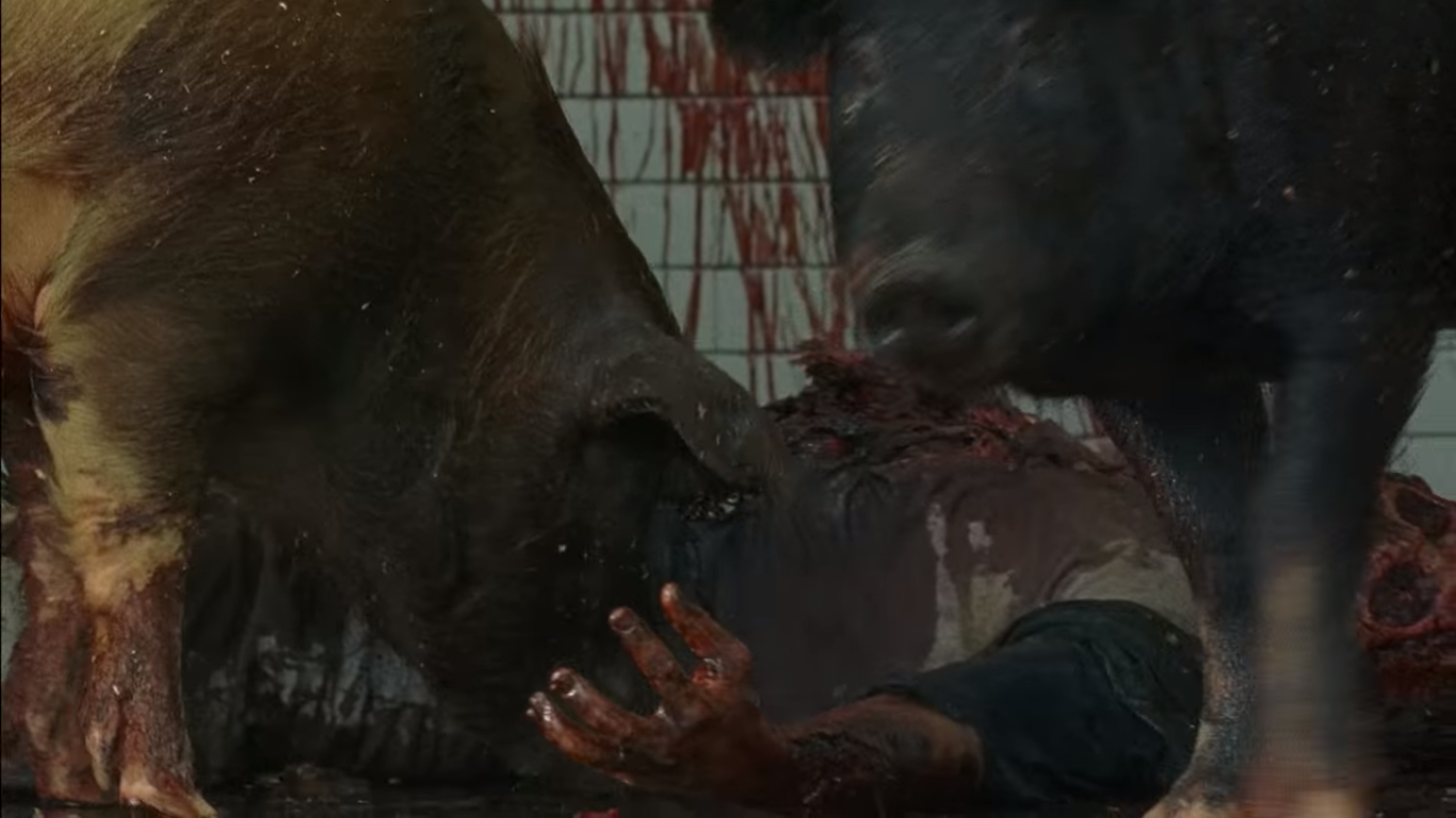Zumbi caindo, Morgan matando alguns, Dwight atirando em alguém em frente a um caminhão com uma mulher ao seu lado, porcos comendo um morto, outro membro do reinado eliminando um morto-vivo, muitos zumbis em Alexandria ou Hilltop, não consegui identificar, mas Jesus (Tom Payne) estava matando alguns, zumbi sendo atropelado e Negan matando um também. Aí aparece Jesus, subindo em um caminhão, o que dá a entender que ele está se escondendo e vai se infiltrar em algum local.