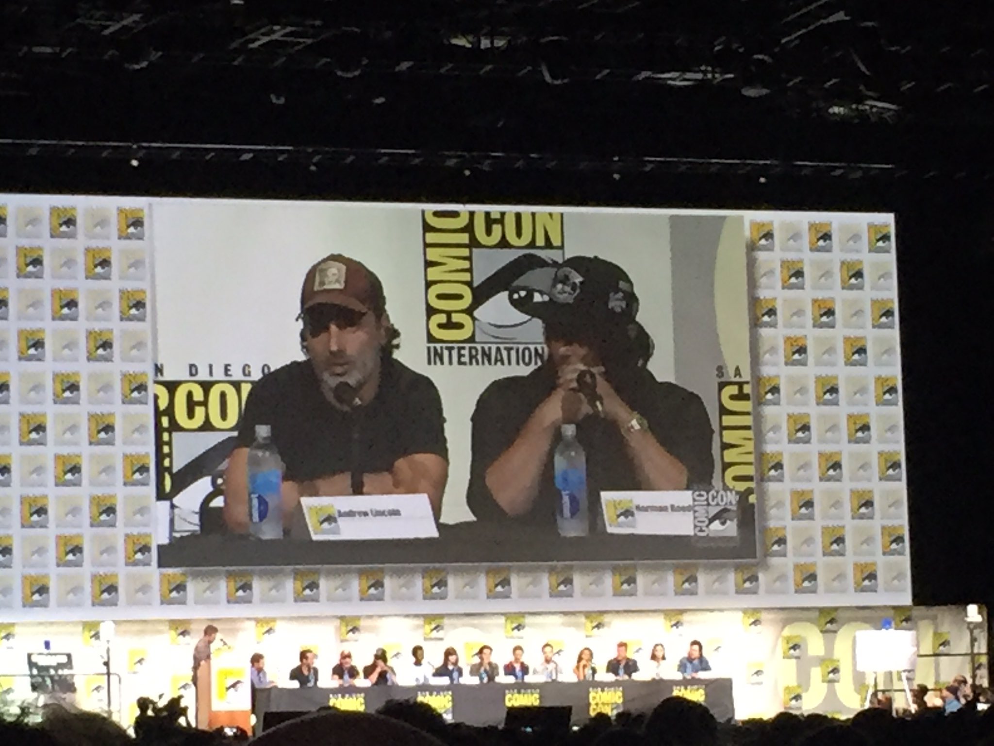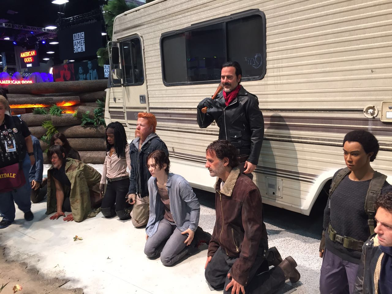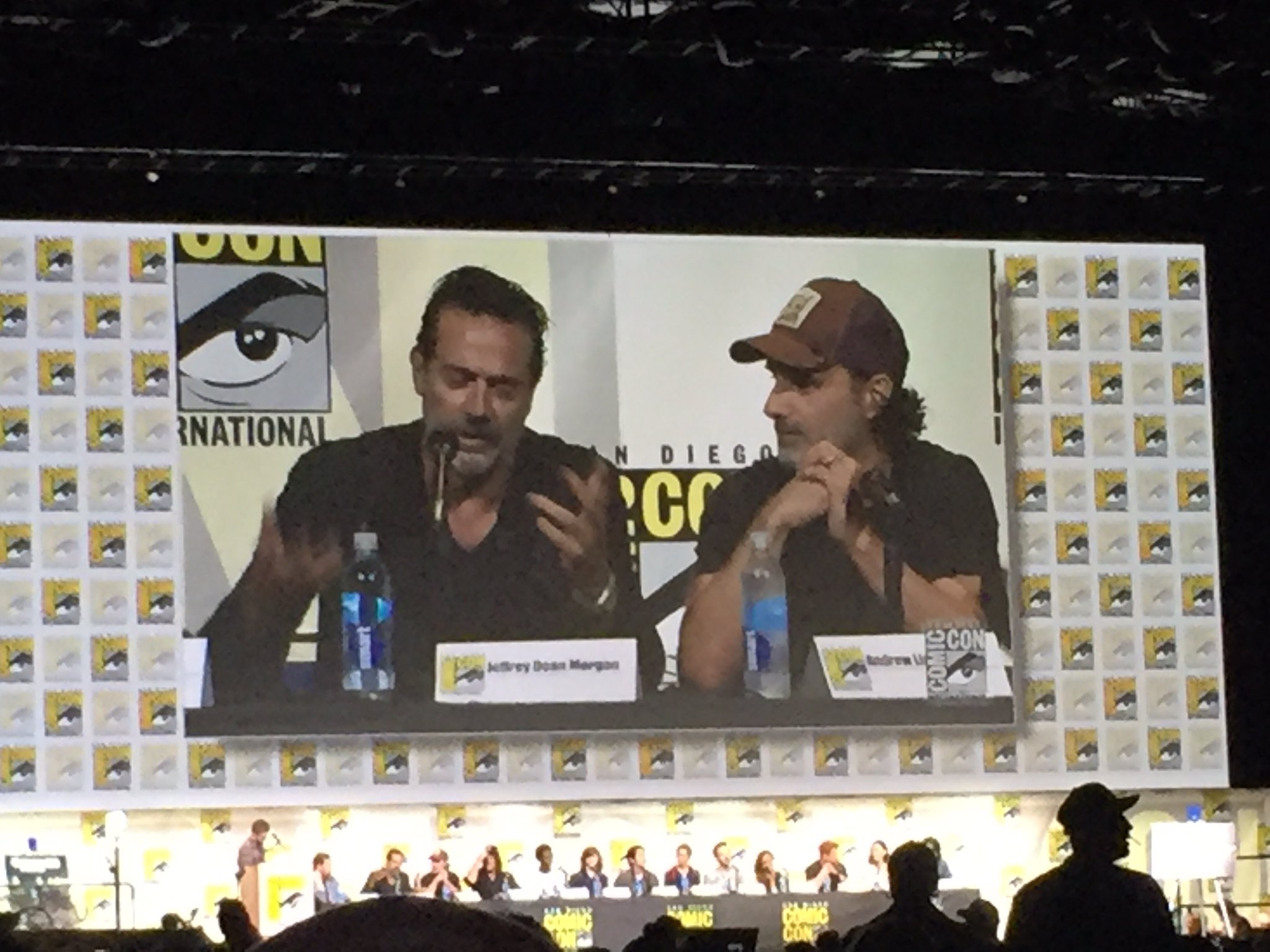 O elenco estava descontraído no palco e parece que Jeffrey Dean Morgan está muito feliz em interpretar Negan. Ele disse: “Eu só apareci 12 minutos na série e foi incrível a reação das pessoas, eu sempre gostei da série”. Ele entrou no palco com a Lucille, o bastão de arame farpado de Negan.