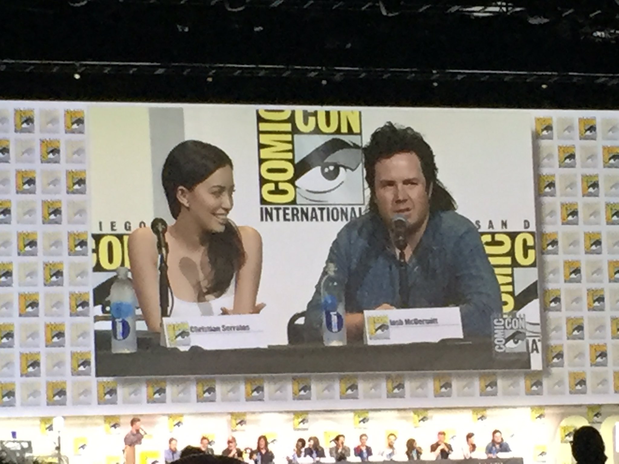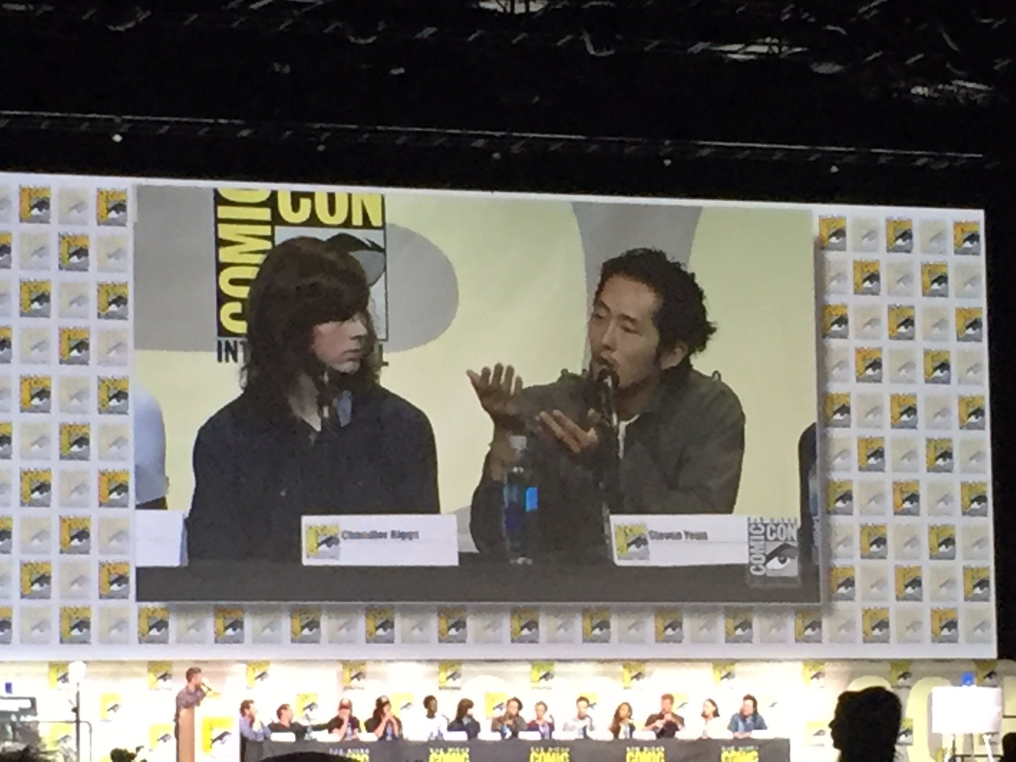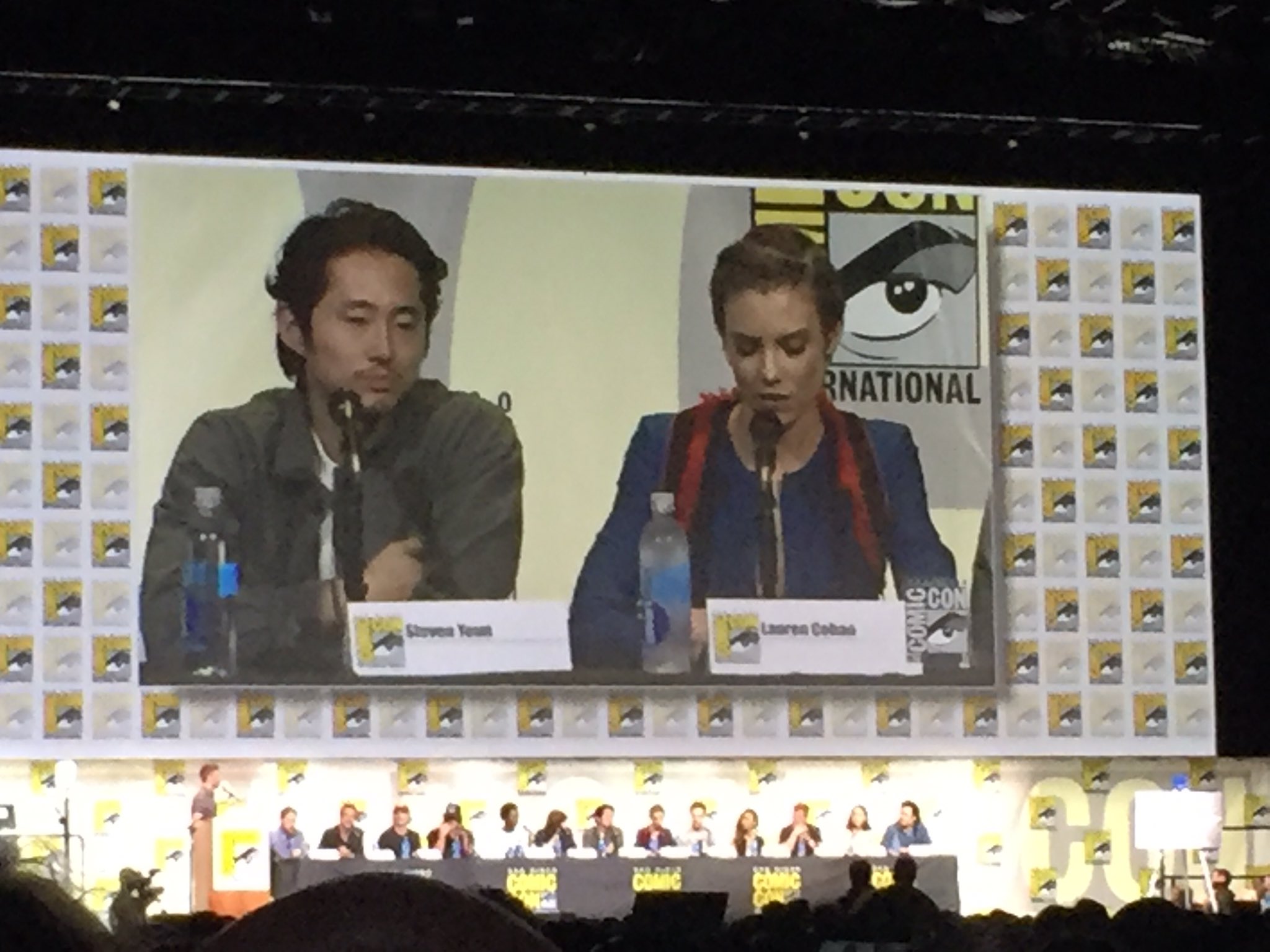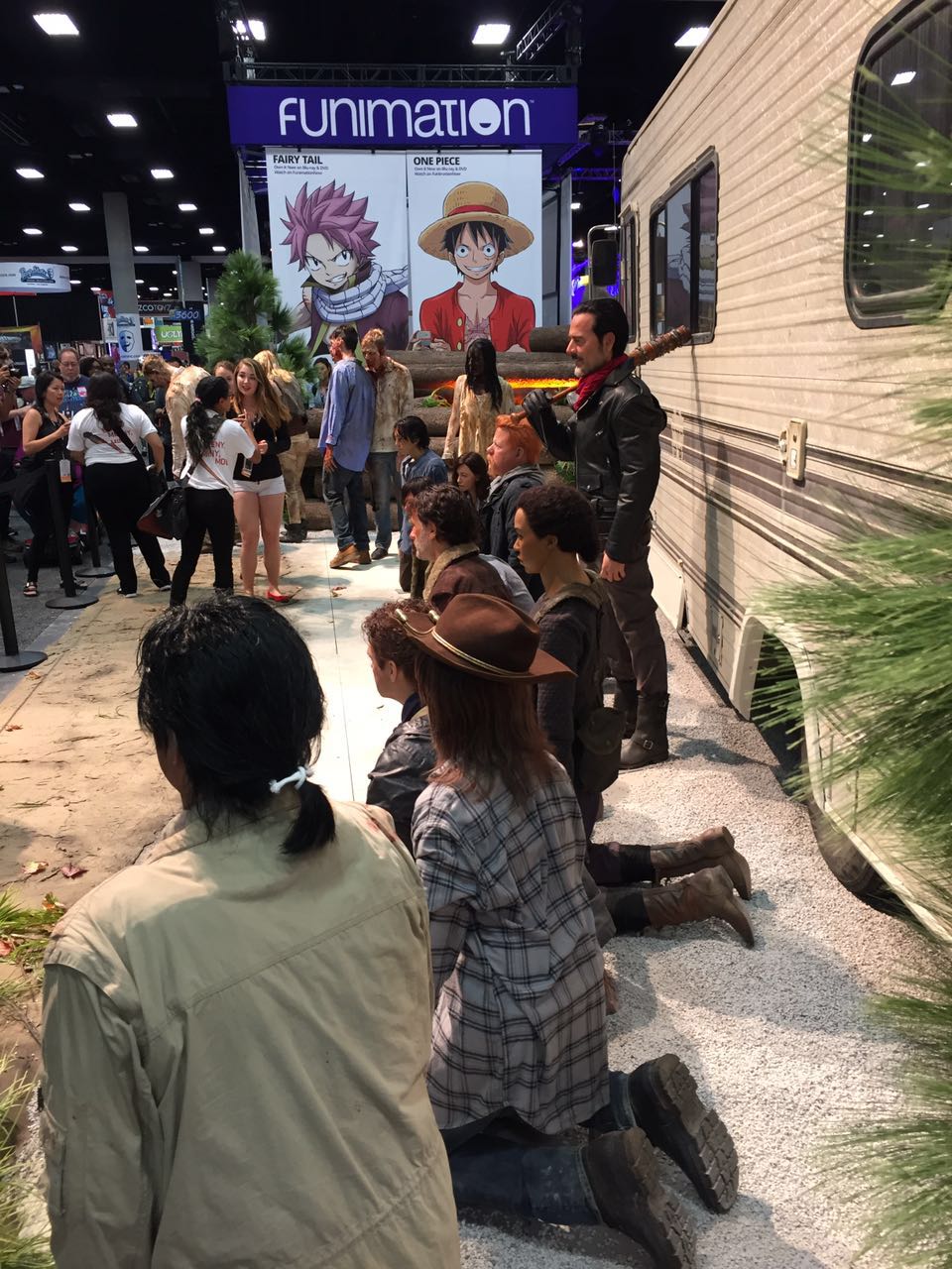 O elenco estava descontraído no palco e parece que Jeffrey Dean Morgan está muito feliz em interpretar Negan. Ele disse: “Eu só apareci 12 minutos na série e foi incrível a reação das pessoas, eu sempre gostei da série”. Ele entrou no palco com a Lucille, o bastão de arame farpado de Negan.