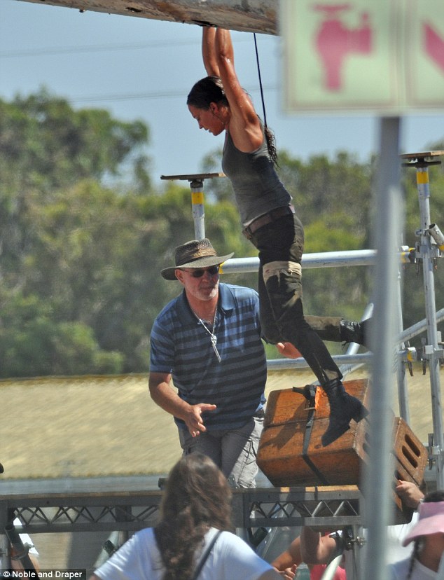 O Daily Mail divulgou as primeiras imagens do reboot de Tomb Raider, com Alicia Vikander interpretando a personagem. As fotos mostram as filmagens de uma cena de ação, com Lara Croft presa pelas mãos:
