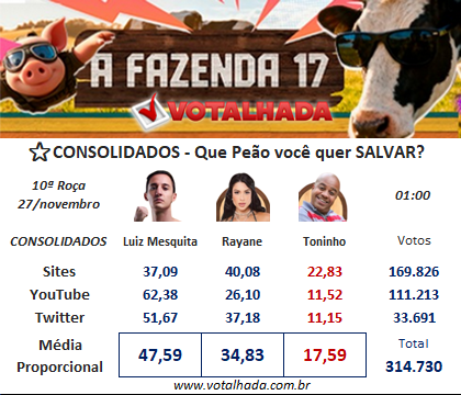 Parcial Votalhada 10ª Roça A Fazenda 17 (Atualizado 27/11 às 01:00)