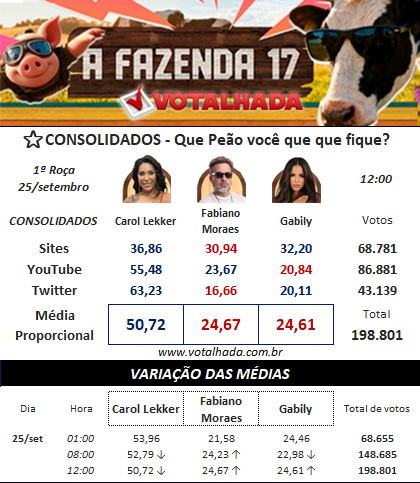 Enquete A Fazenda 17 Votalhada (Atualizado em 25/9 às 12:00)